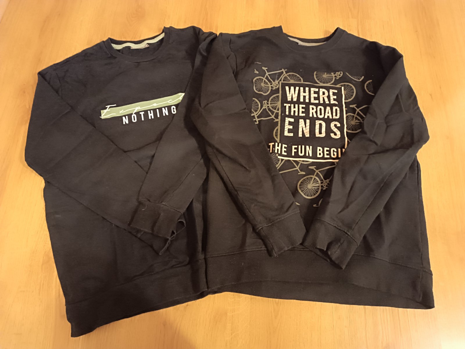 Pekná mikina s kapucňou a klokanim vreckom vpredu veľkosť uvedená 158/164 dĺžka rukávov od ramena 49 šírka v klude 2x50,5 celková dĺžka 60 viac odpoviem.