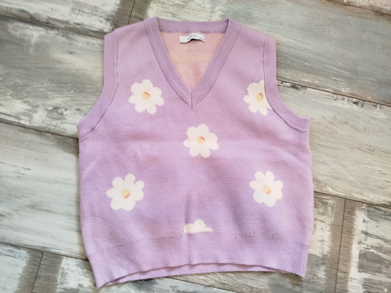 Teplá pletená vestička s kvietkami,v peknom stave.