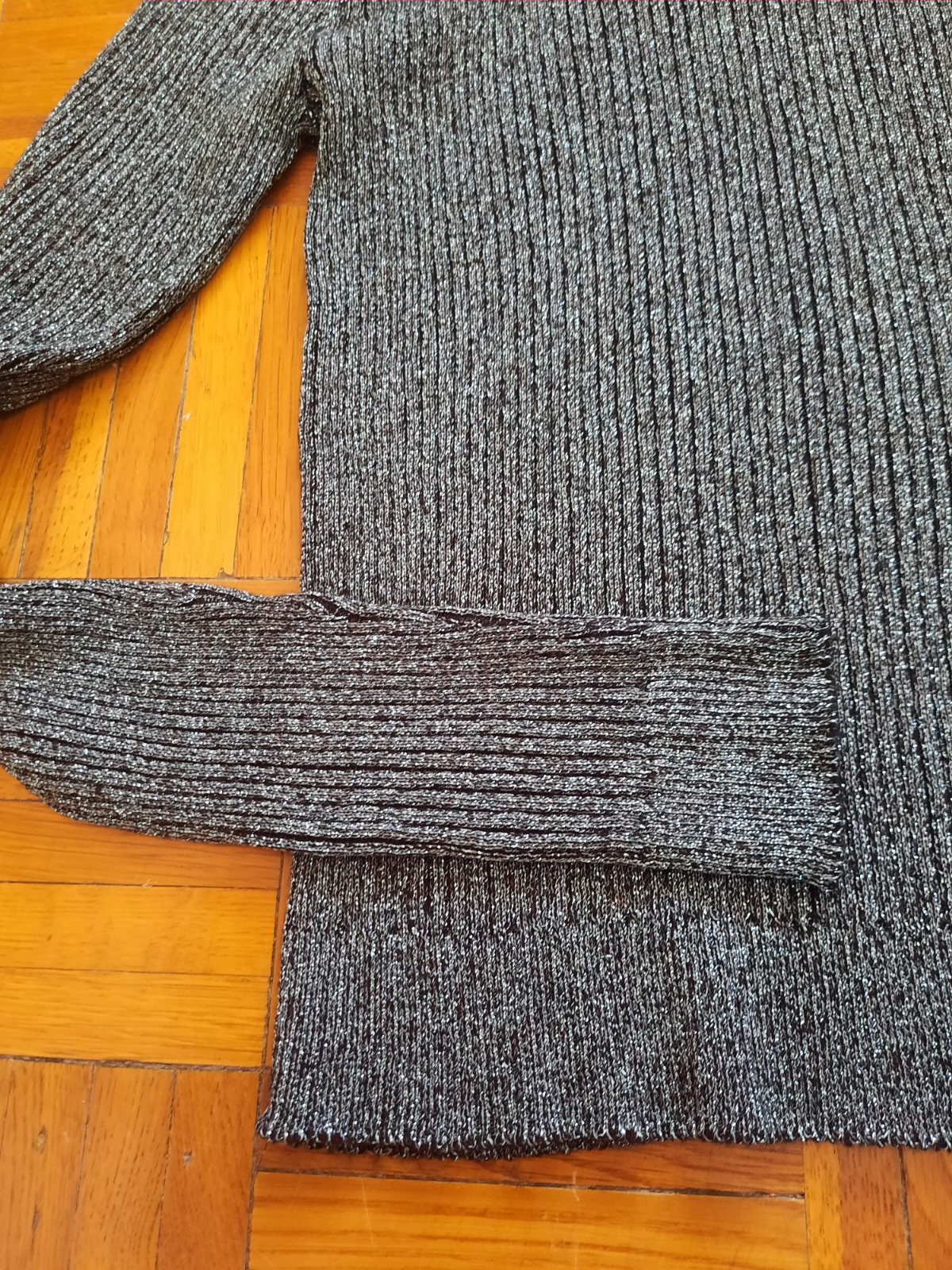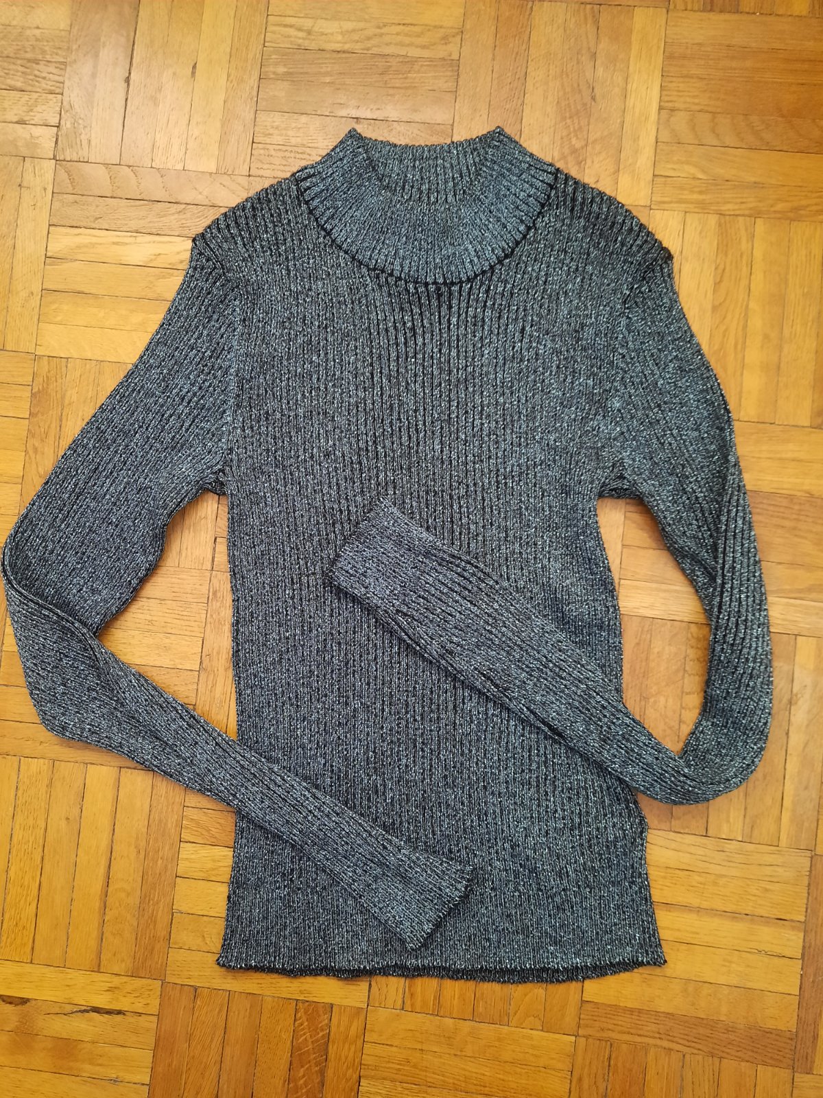 Veľmi pekný pulóver jemne trblietavý, má zvláštnu metalízovú farbu. Pôsobí elegantne. Vhodný aj pre staršie dievčatá.