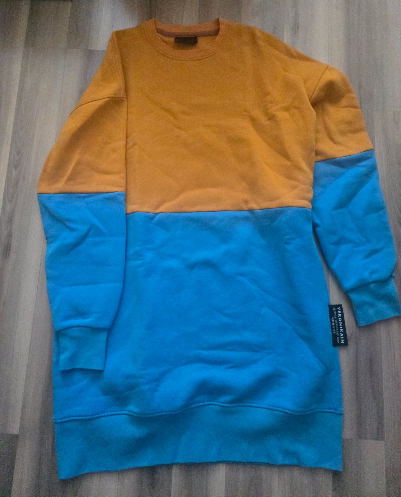 Veronika IN mikinosaty. Nosene par krat, ako nove. Site na S/M, ale sadnu pokojne aj na M/L. Celkova dlzka 91 cm, sirka 59 cm. Kvalitna pocesana teplakovina. Farba ako na detailnejsich fotkach. K cene plus postovne naklady.
