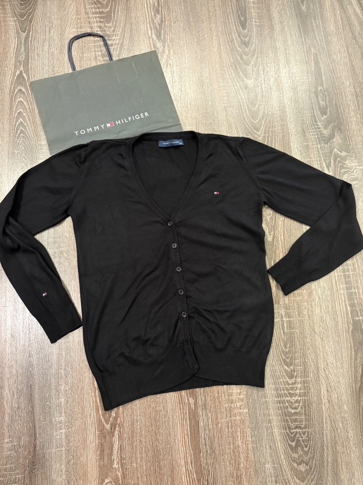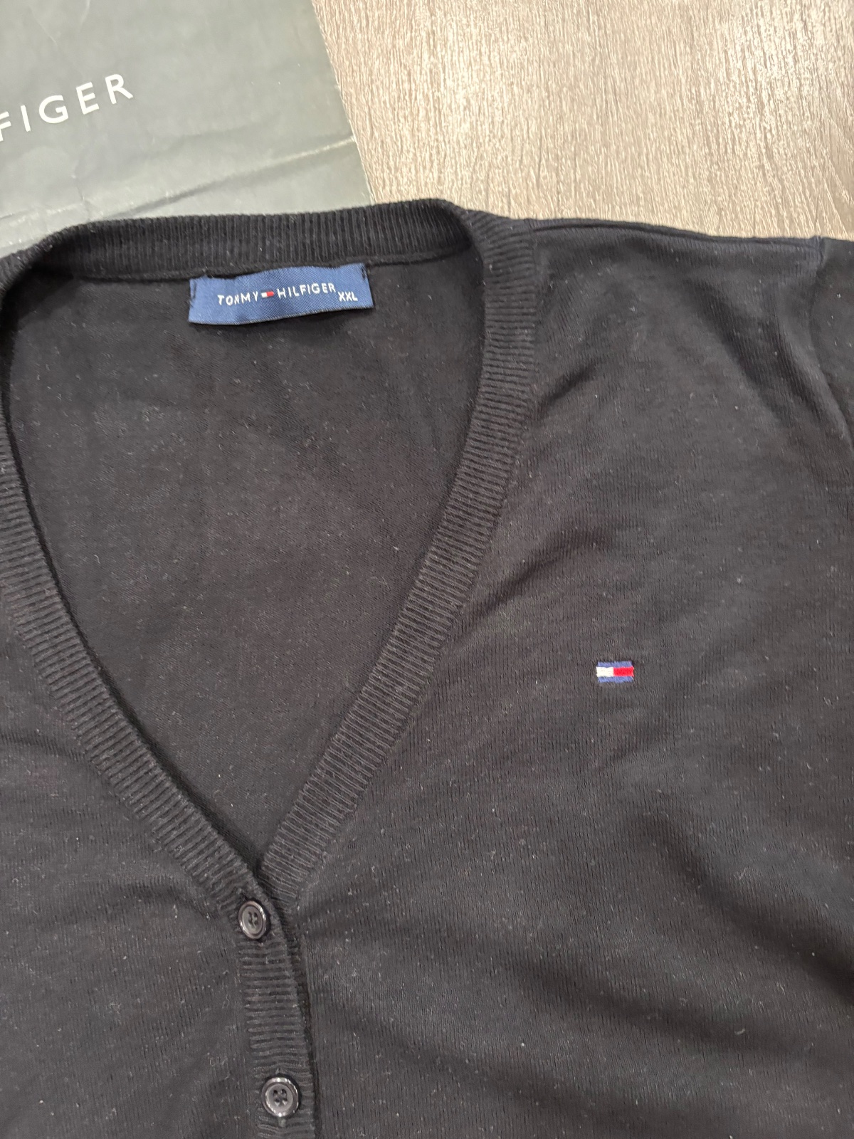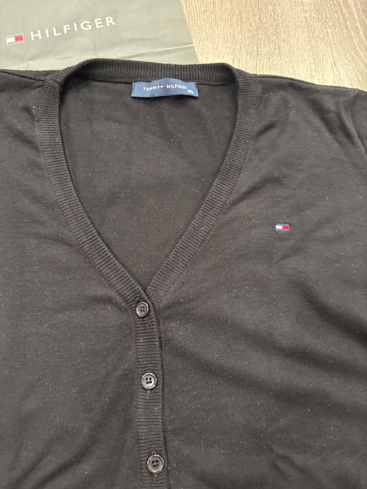 010.Tommy Hilfiger cierny damsky elasticky sveter,velkost XXL,nevyblednuty,dlzka je 65cm,dlzka rukava od krku je 77cm a sirka v podpazusi je od 51x2cm do 61x2cm