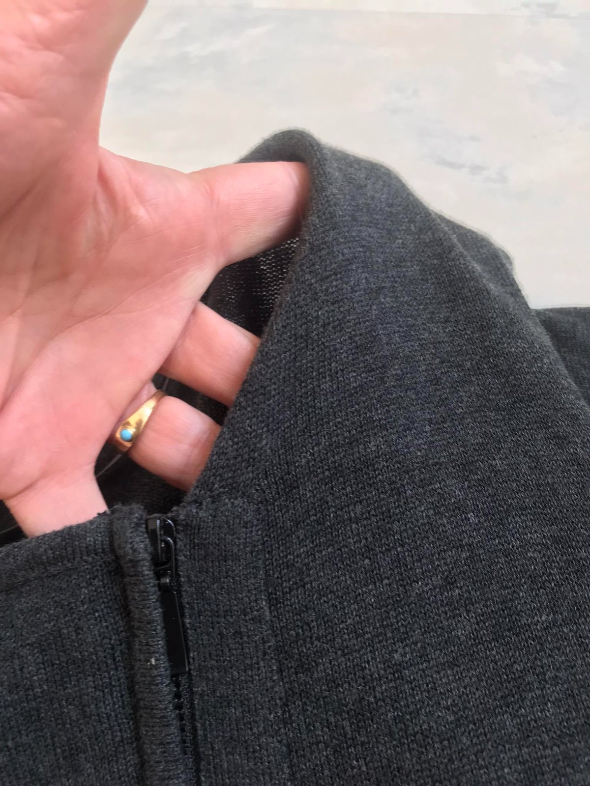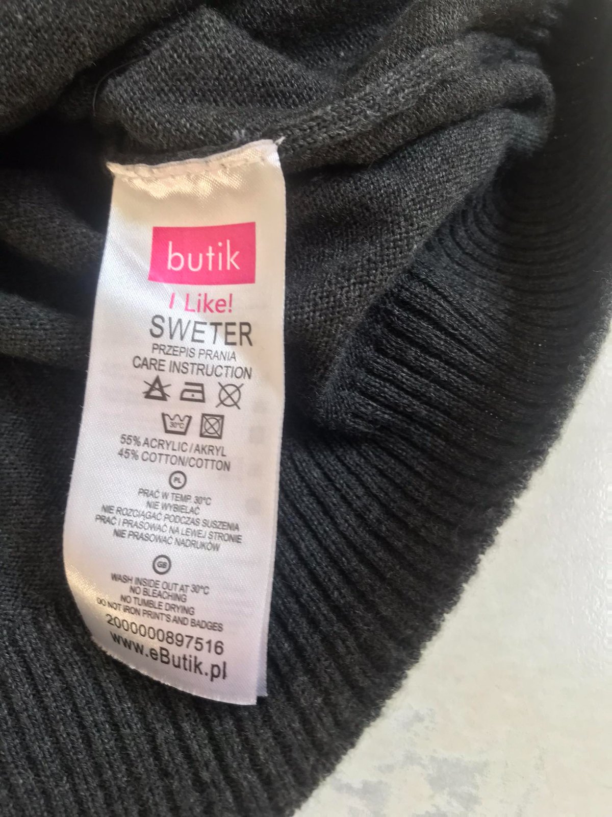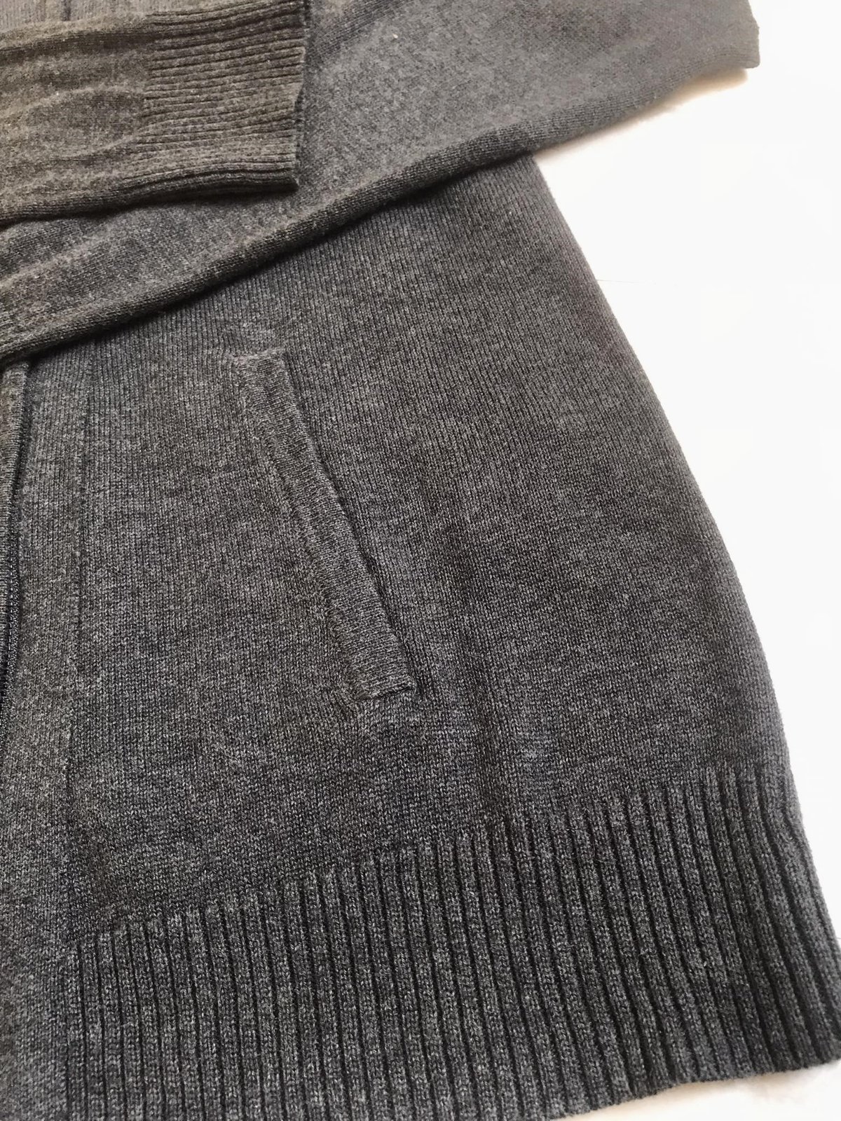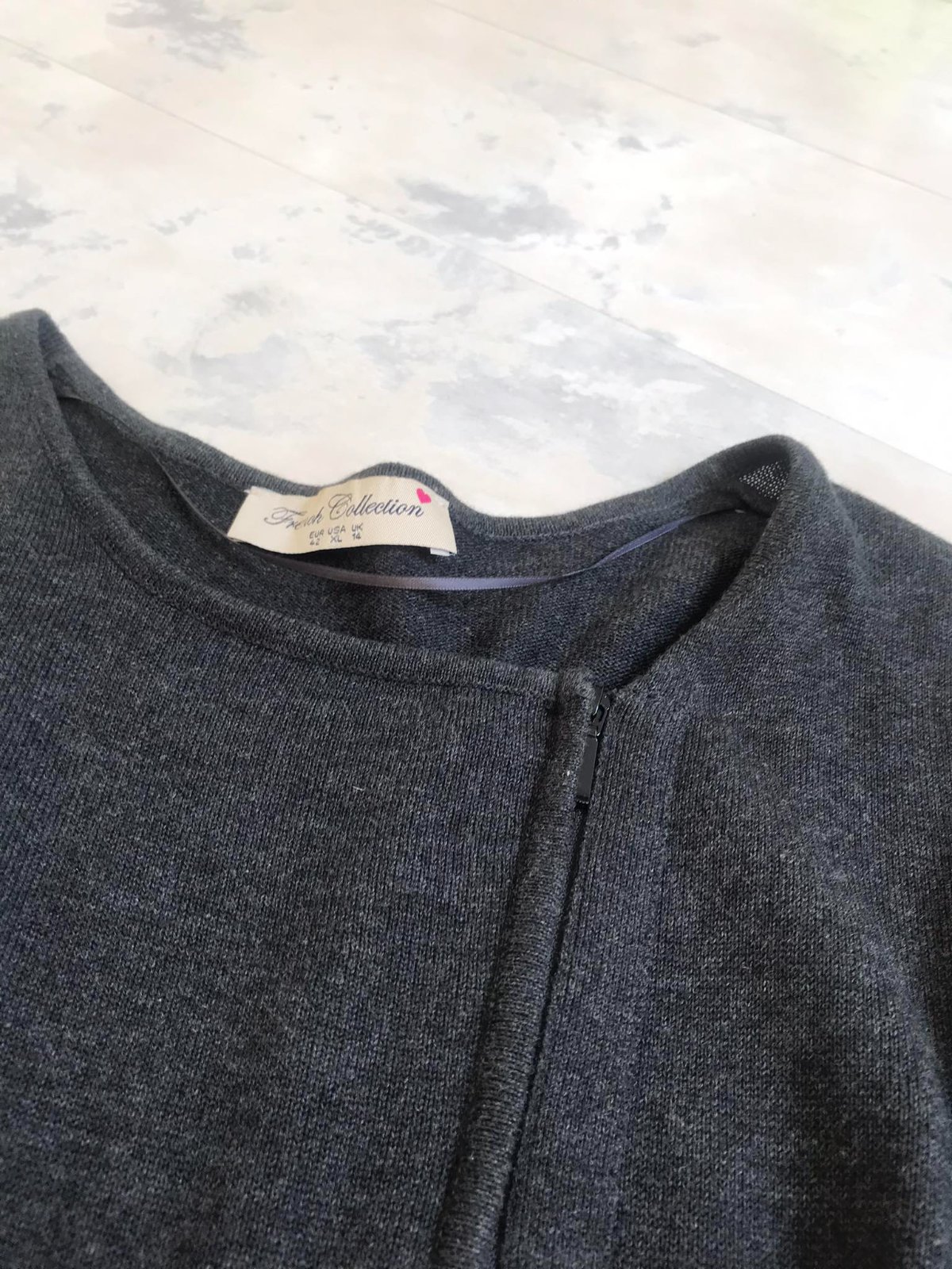 svetrík so zaujímavými detailami,bočné vrecká,top stav,farba antracitovo šedá,uvedená veľkosť 14/42,55 % acryl, 45 % bavlna