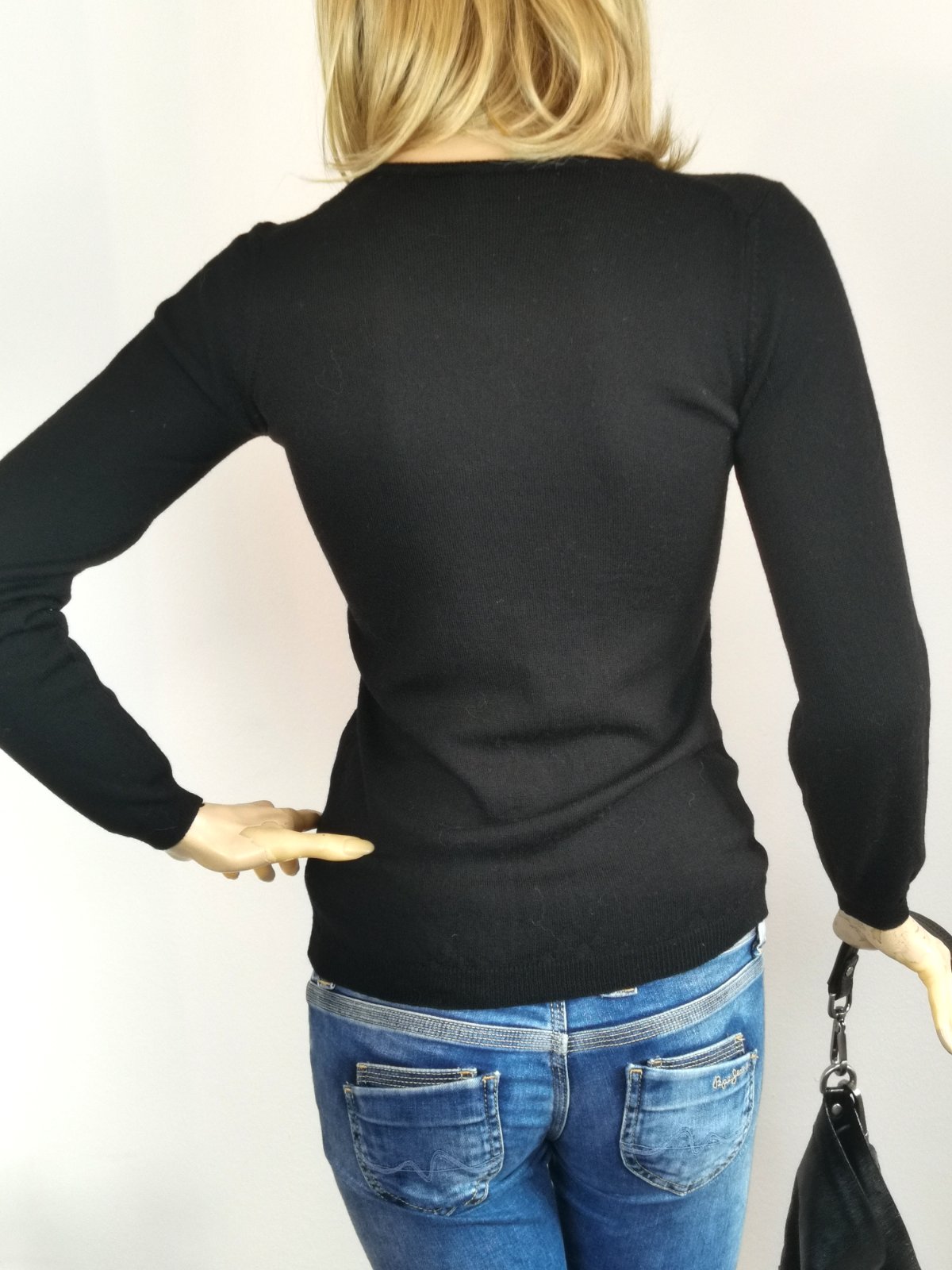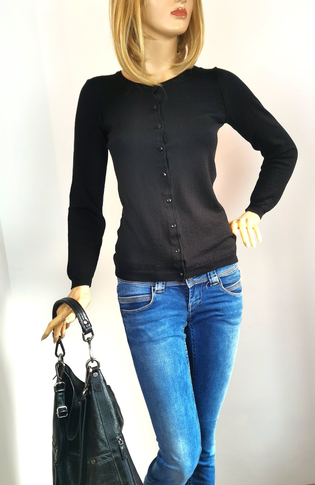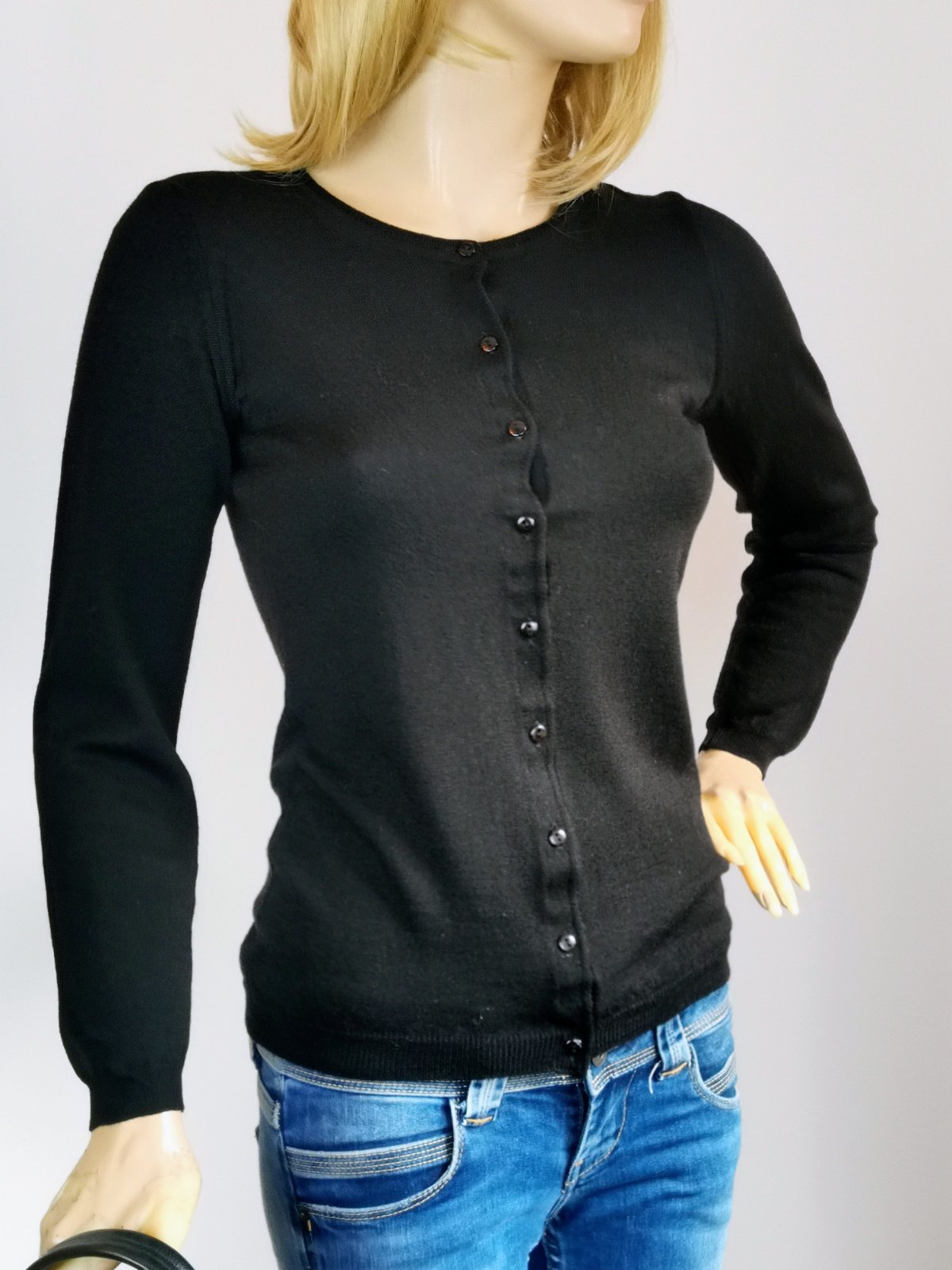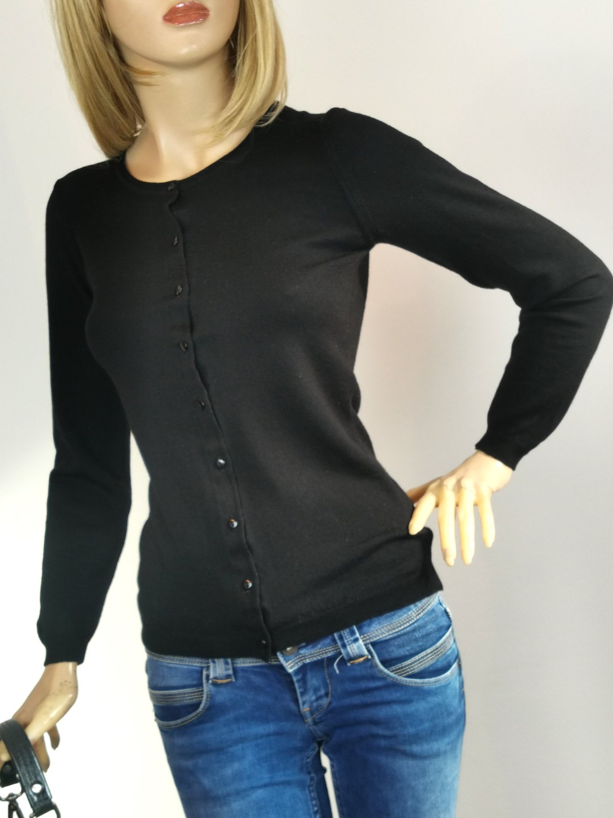 Tento nadčasový sveter je klasický a všestranný kúsok, ktorý sa dá nosiť elegantne aj ležérne. Má okrúhly výstrih, dlhé rukávy a zapínanie na gombíky.