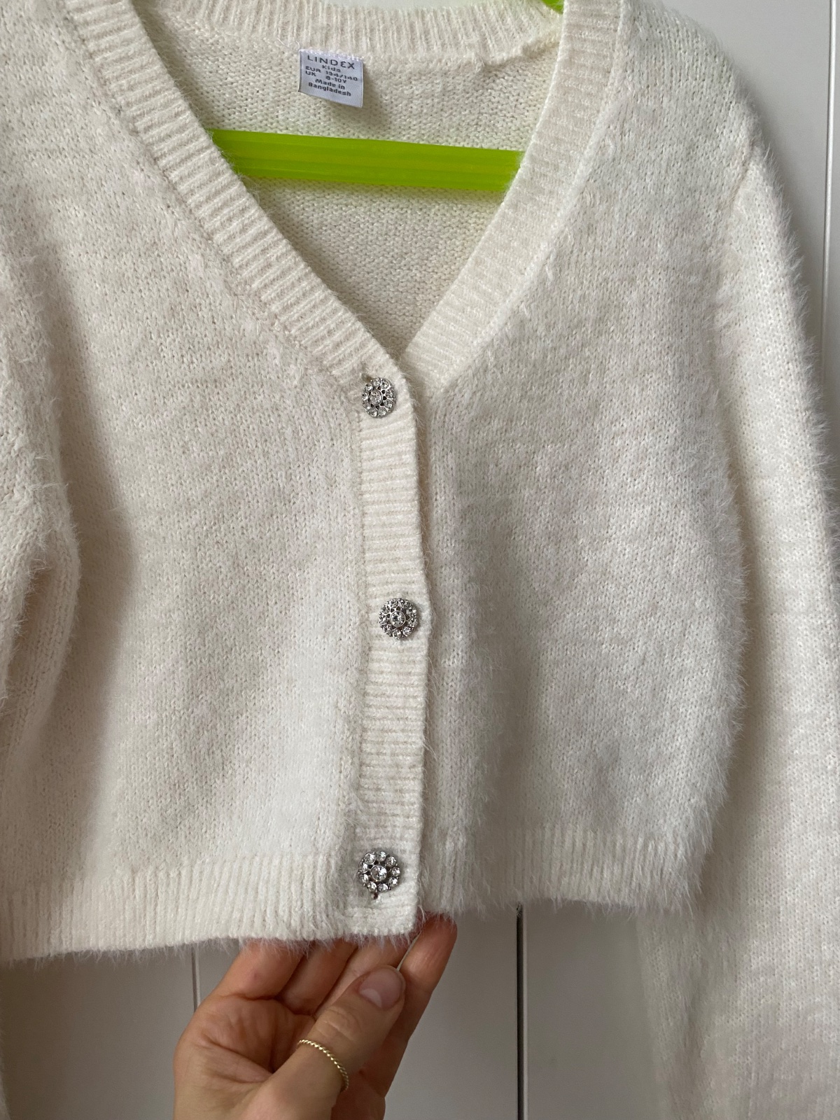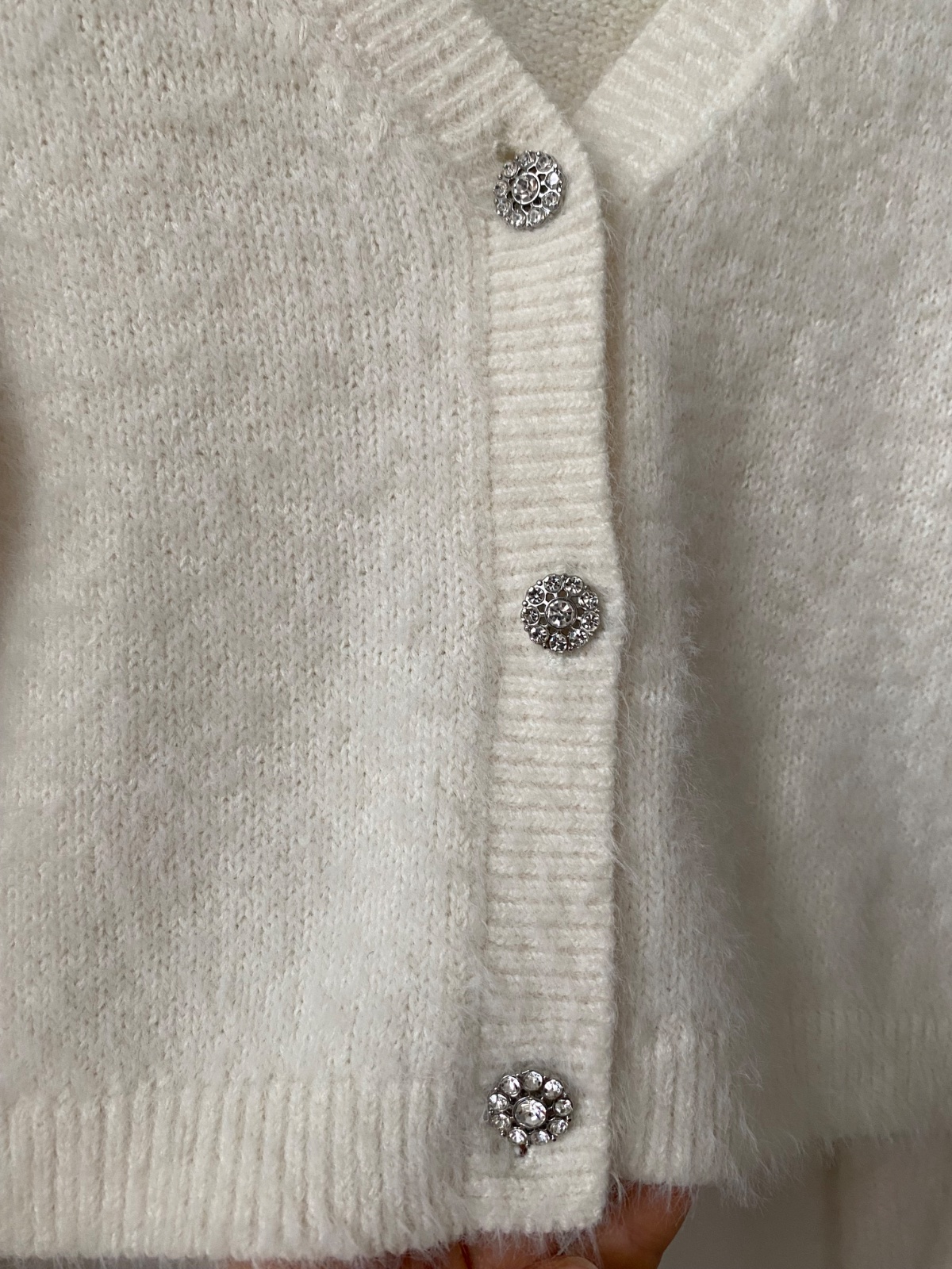 Jemnučky svetrik so strasovymi gombíkmi