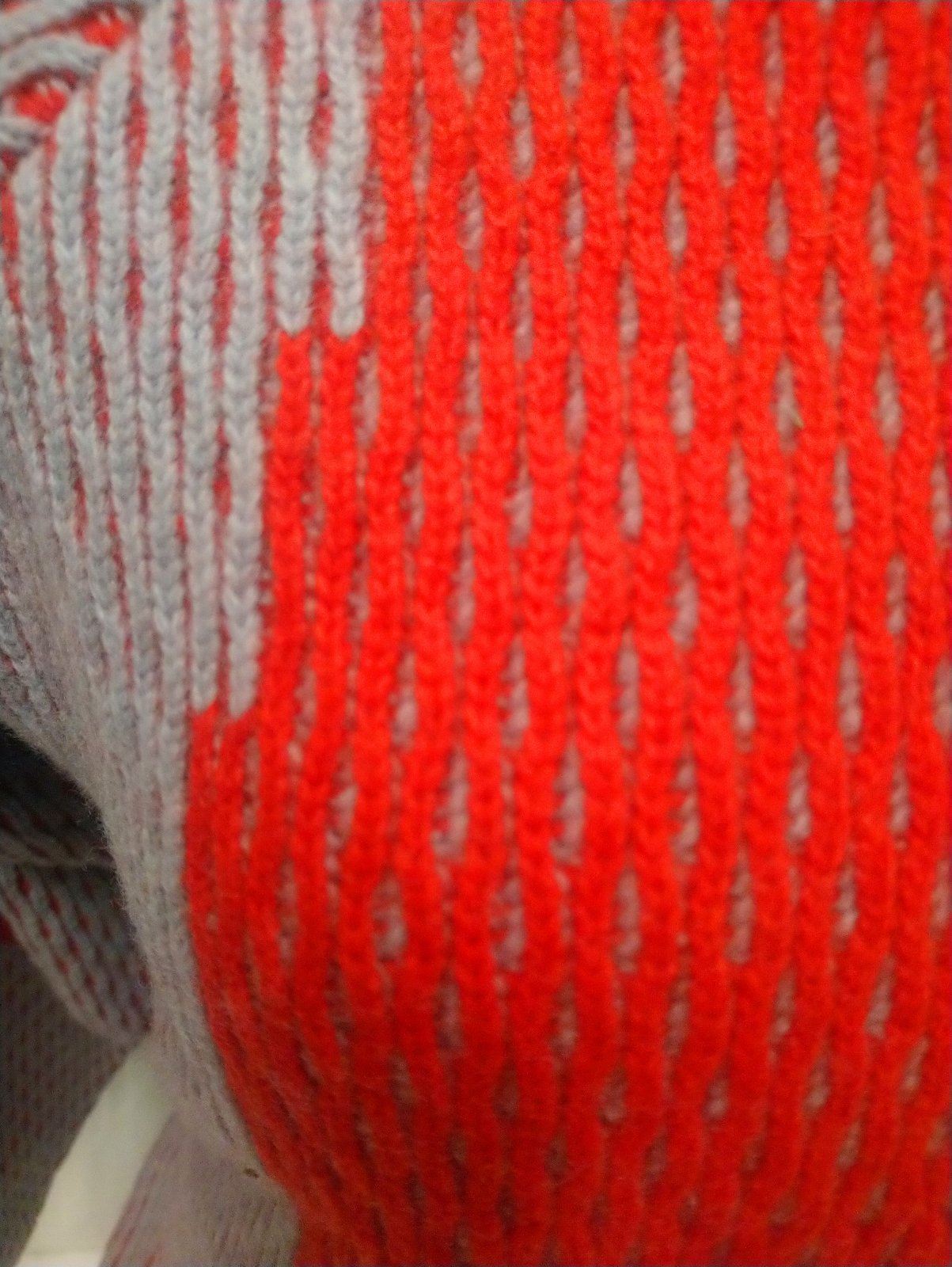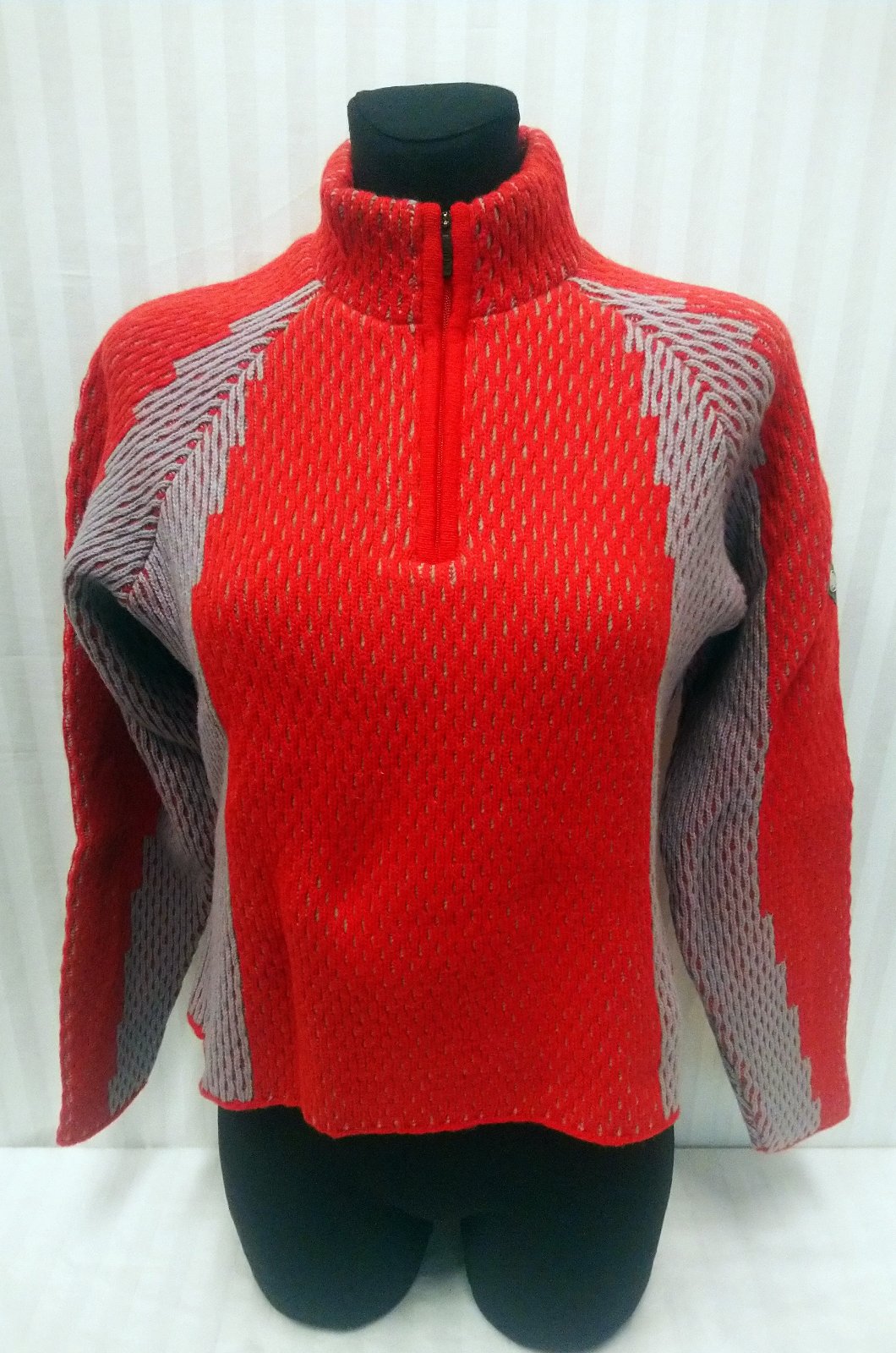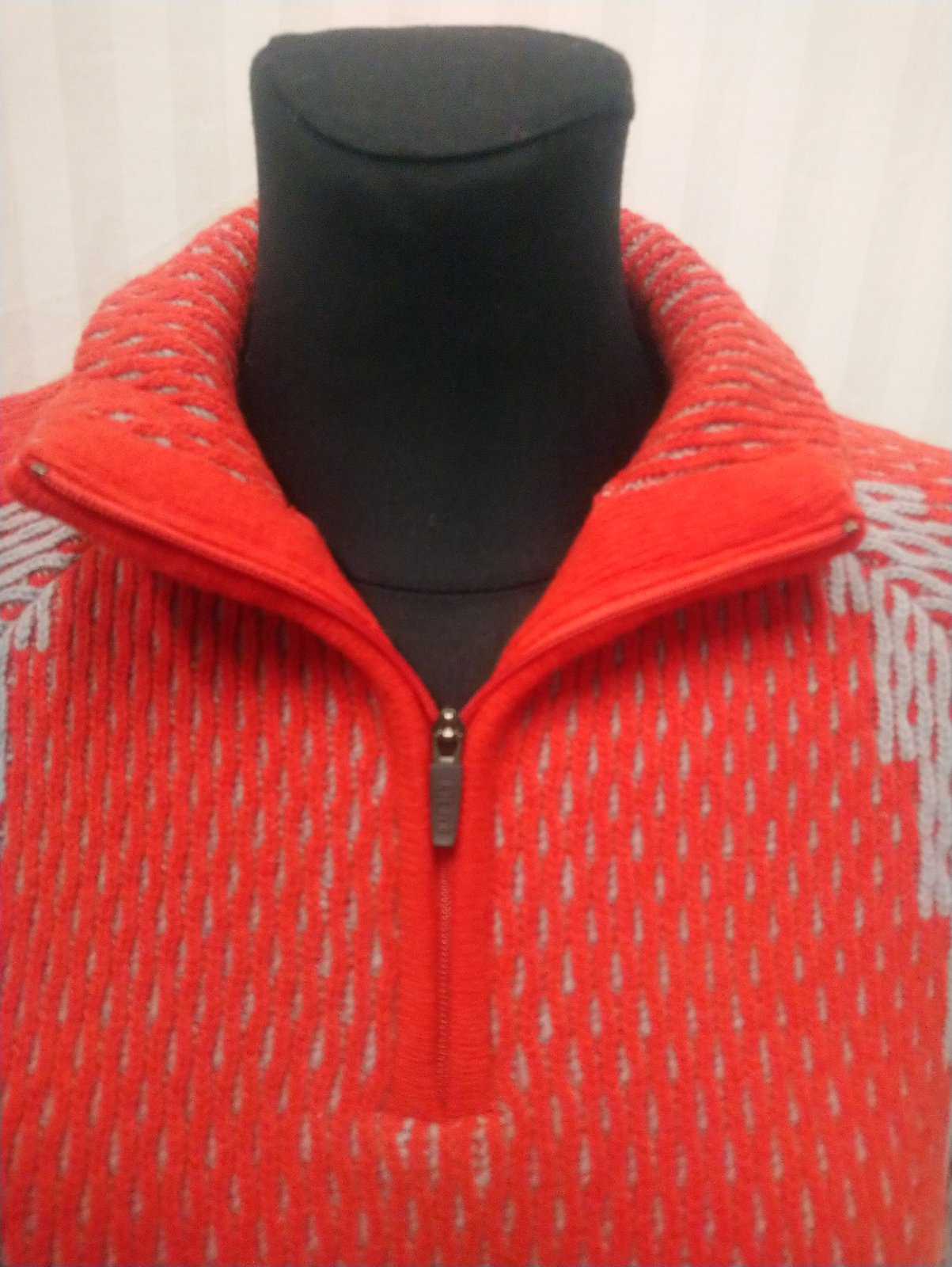 nový dámsky vlnený pulóver na zips ku krku, golier, plastický vzor, červeno sivý, hrejivý,