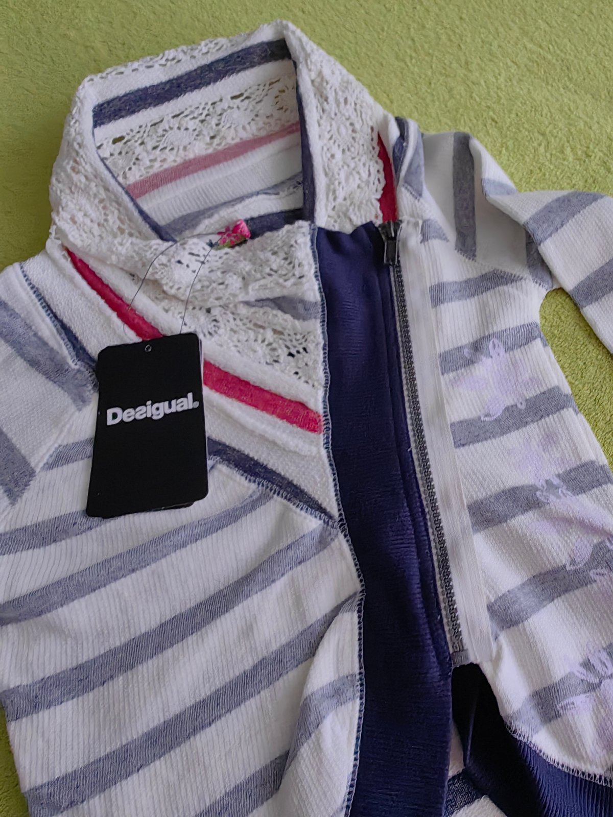 Nenosená mikina značky Desigual - s visačkou, originál. Písaná veľkosť na 6/7 rokov, naša 110/116. Zloženie 100% bavlna. Pôvodná cena 69 eur. Veľmi výrazná, krásne spracovaná, každý si ju všimne. Dcérke, žiaľ, malá. Osobný odber v Bratislave, alebo poštou, poštovné nie je zahrnuté v cene.