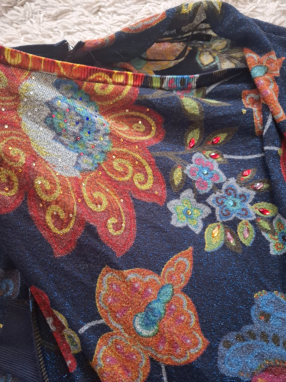 Svetrík v nádhernom zachovalom stave bez akéhokoľvek poškodenia. Veľkosť je uvedená L ale sadne na Veľkosť M