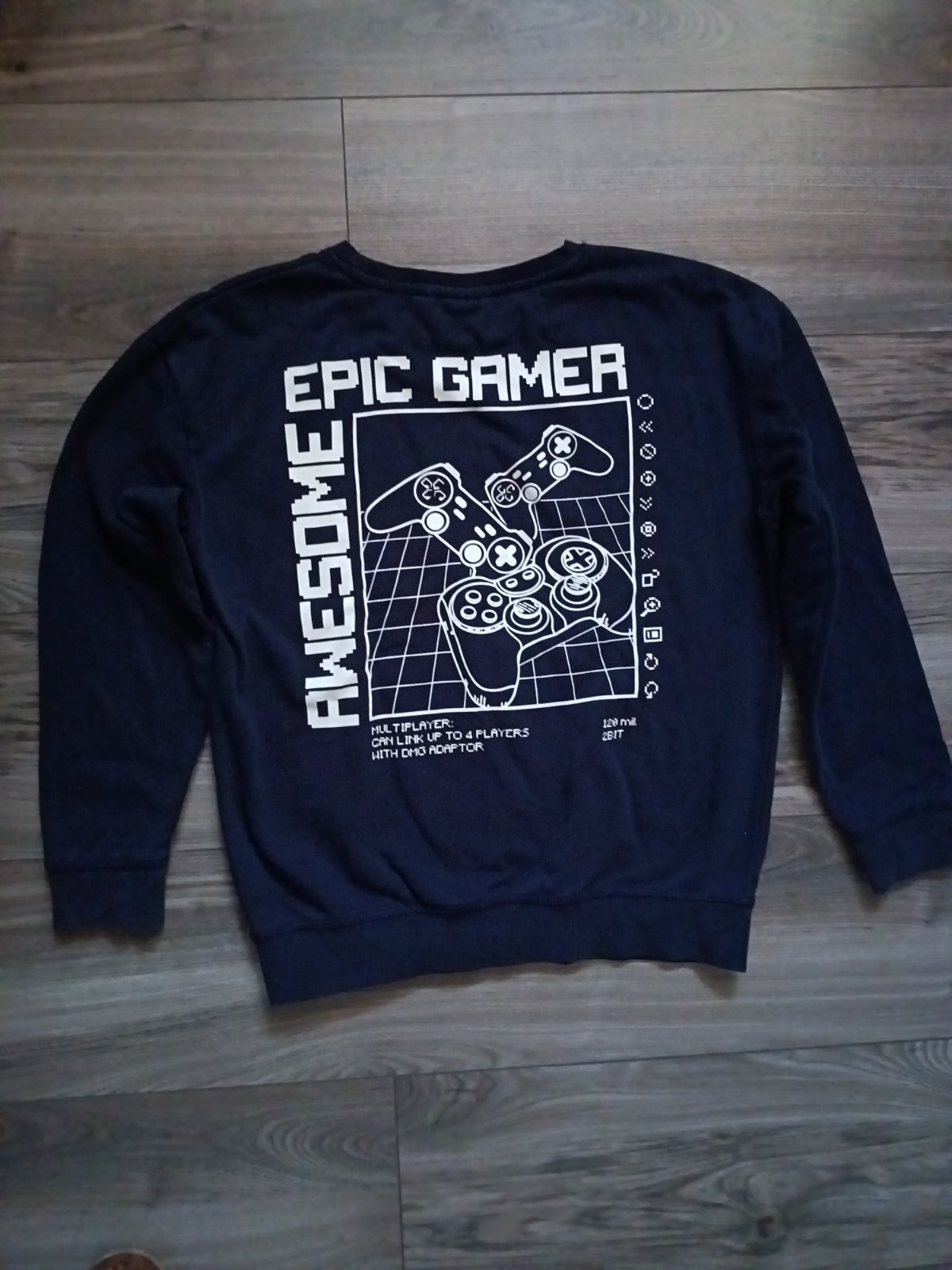 Predám krásnu chlapčenskú mikinu v top stave, predná strana je bez obrázku a na zadnej strane je obrázok, celková dĺžka 56cm, rukáv od ramena 46cm, obvod cez prsia 2x48cm