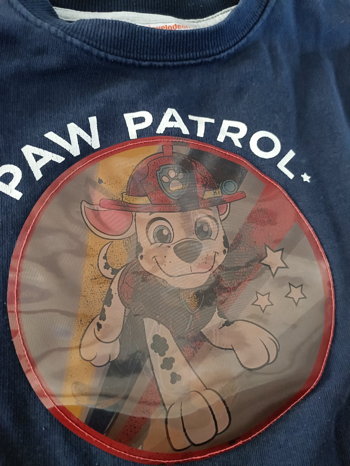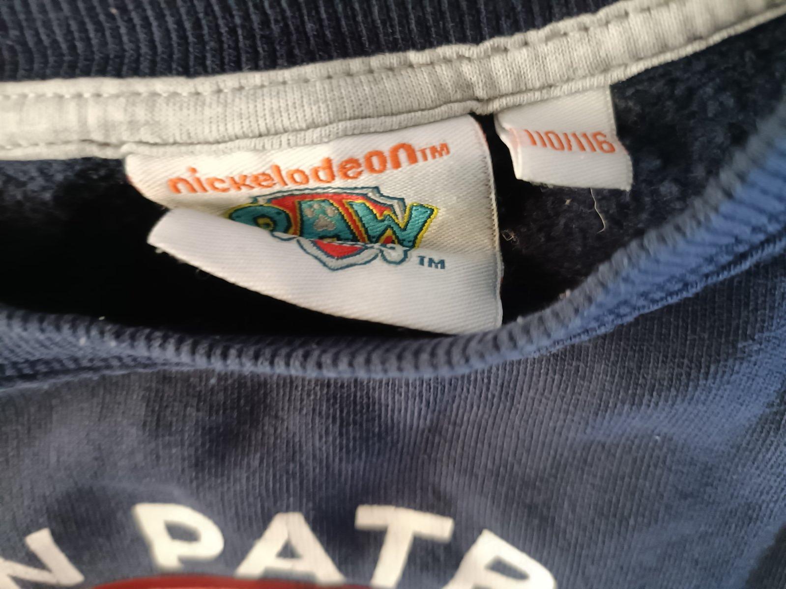 Tmavomodrá Paw patrol mikina s meniacim sa obrázkom Chasea a Marshala -nejde dobré odfotiť kvôli svetlu ale inak je to vidieť dobre.