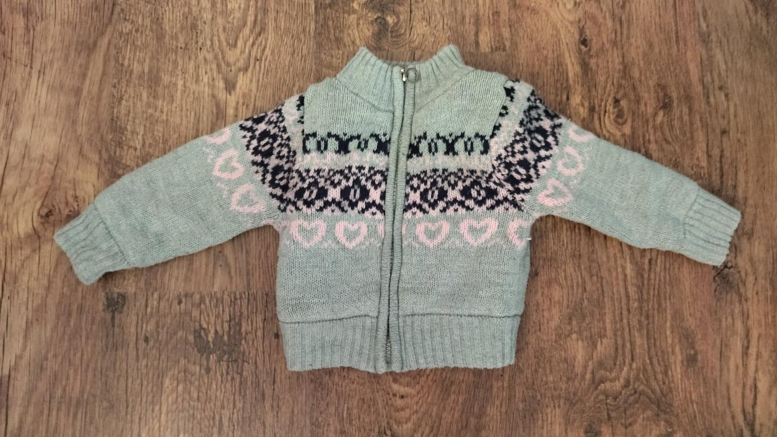 Predám teplý svetrík 80/86 bez dier a fľakov šírka 23 cm.dl 29 cm.rukav od krku 32 cm
