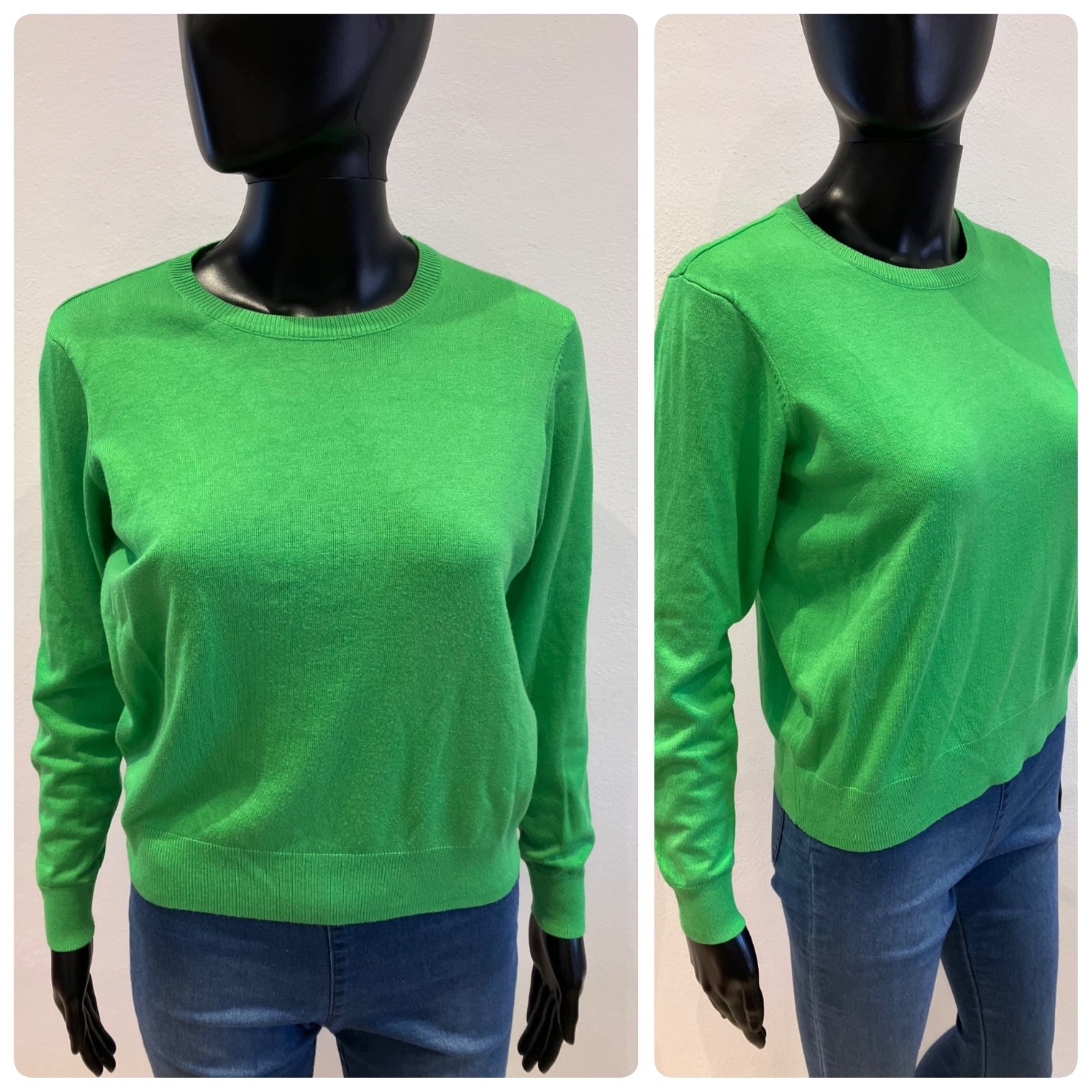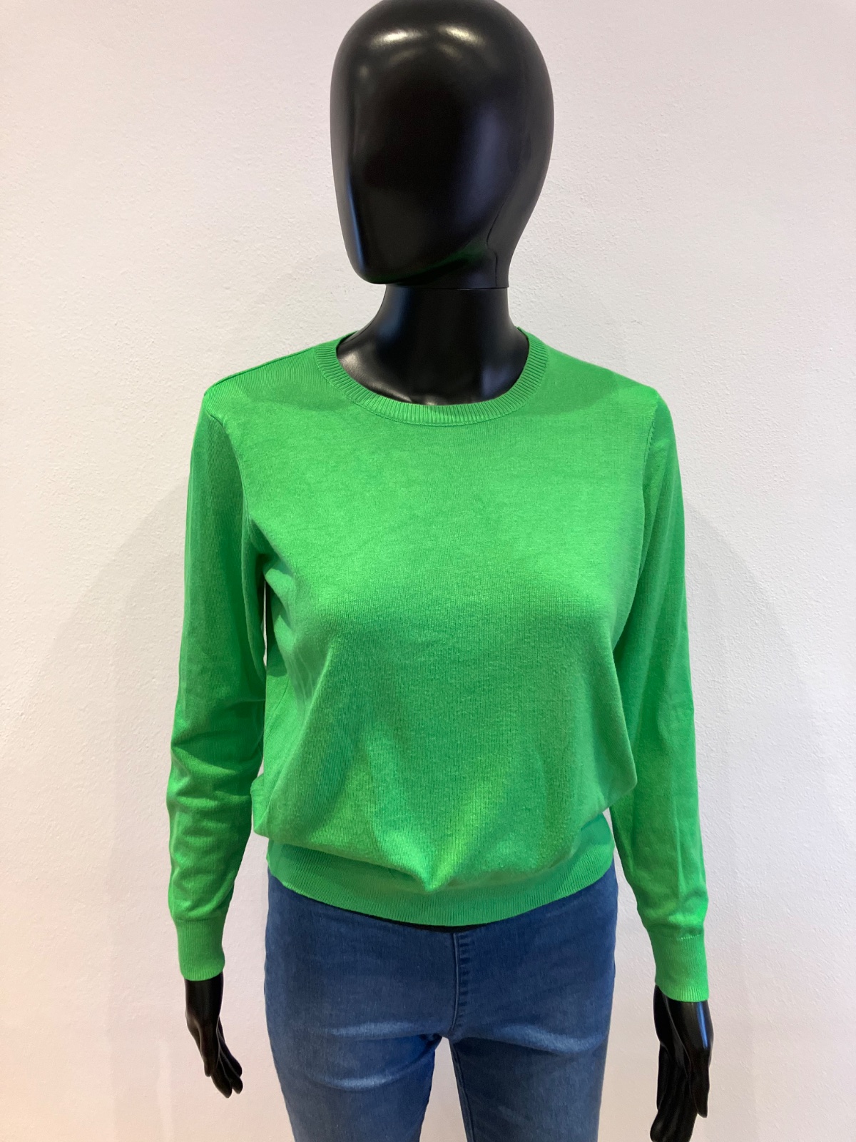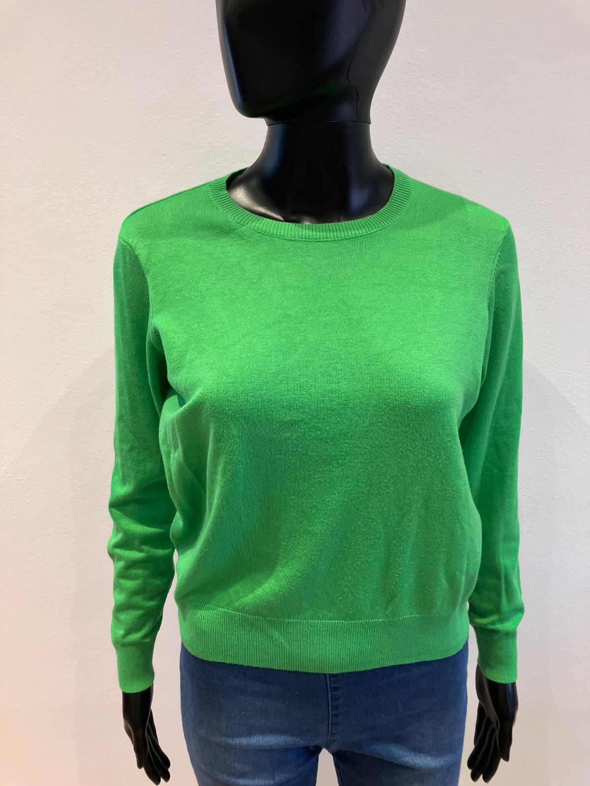Dámsky sveter, tenký, elastický, okrúhly výstrih.