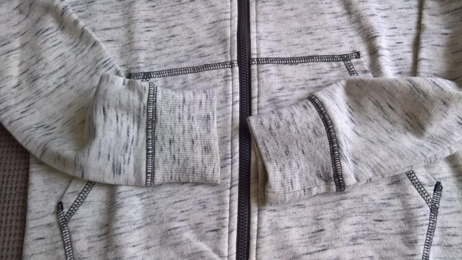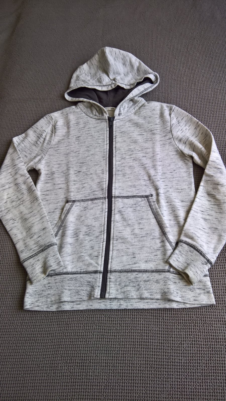 tenšia mikina, konce rukávov zvnútra sú trochu zájdené, iné poškodenia nemá. Štítok s veľkosťou je odstrihnutý, preto sa prosím riadte rozmermi: