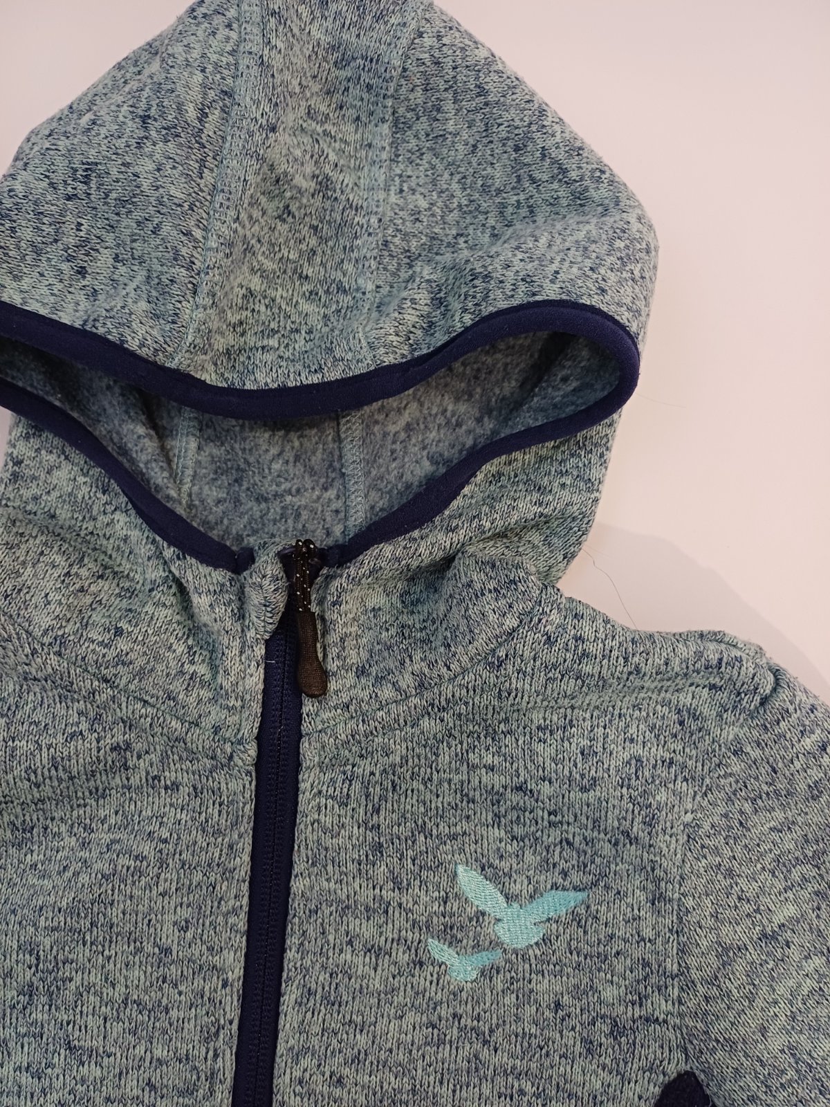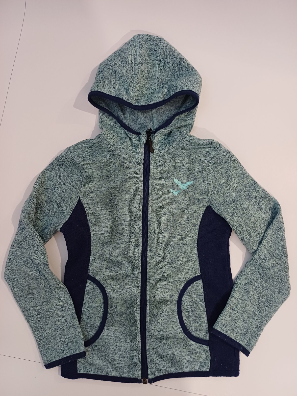 Predám mikinu vo veľkosti 122/128 modro-mätovej farby. Stav bez poškodení a bez fľakov.