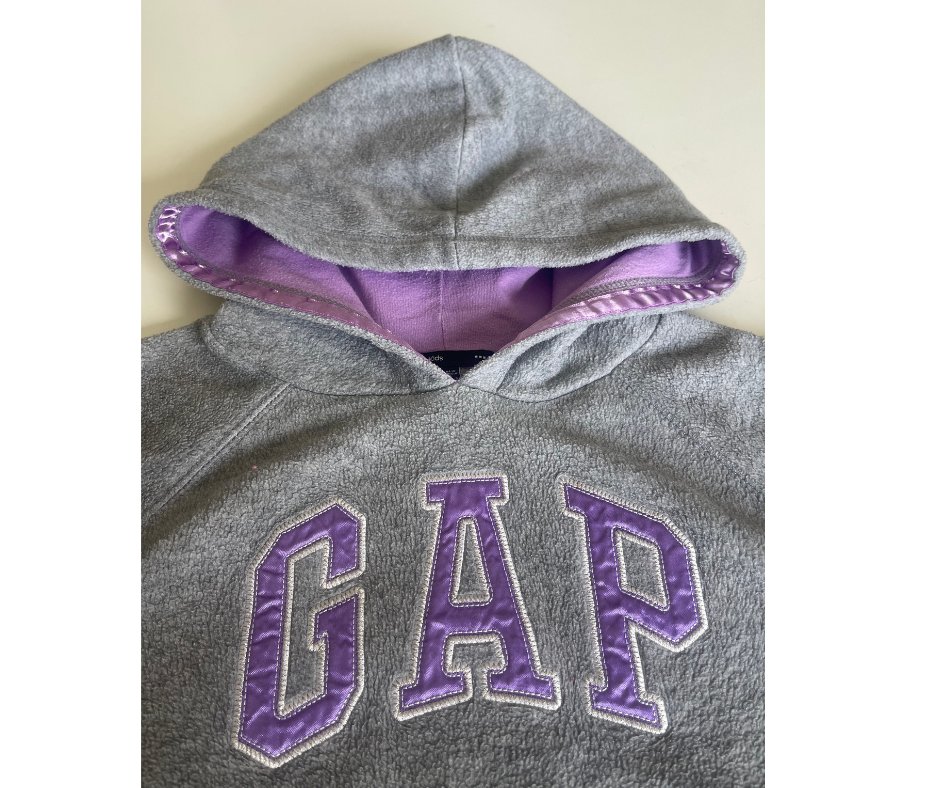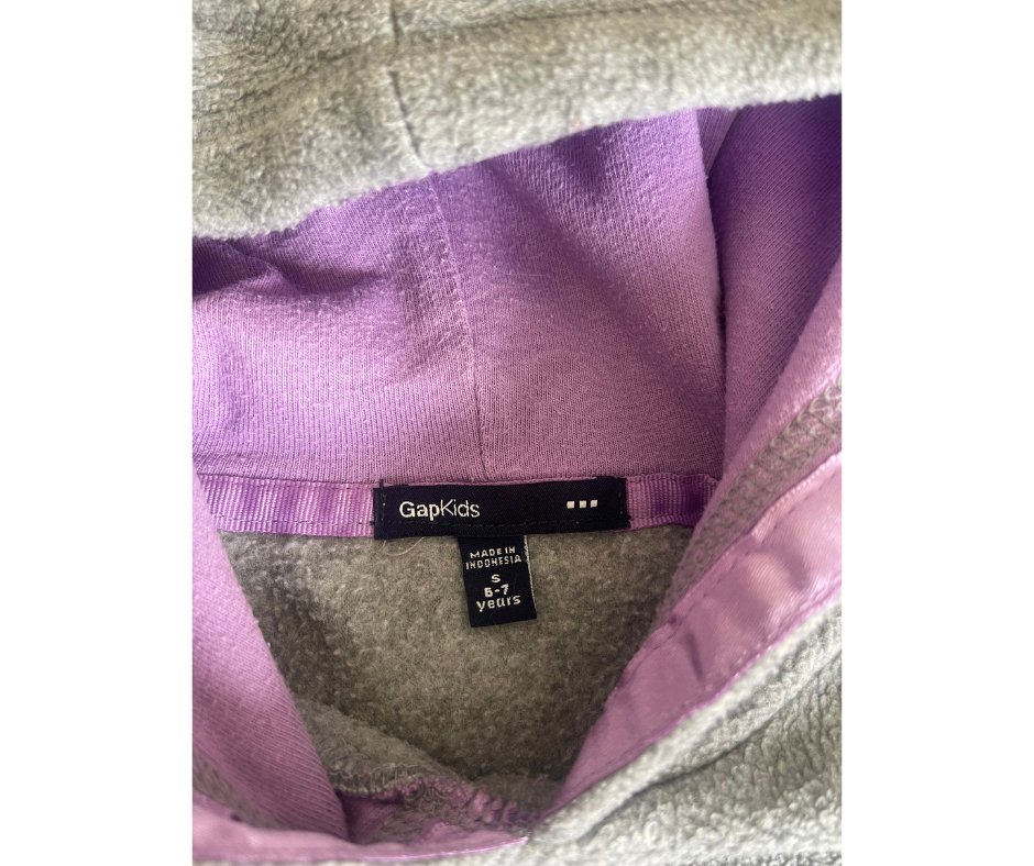 Zachovalá mikina GAP šedej farby a fialovým náposom GAP pre 5-7 ročné dieťa.