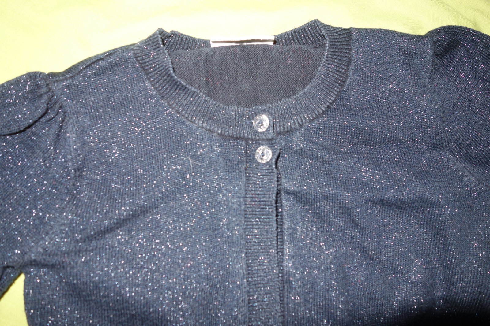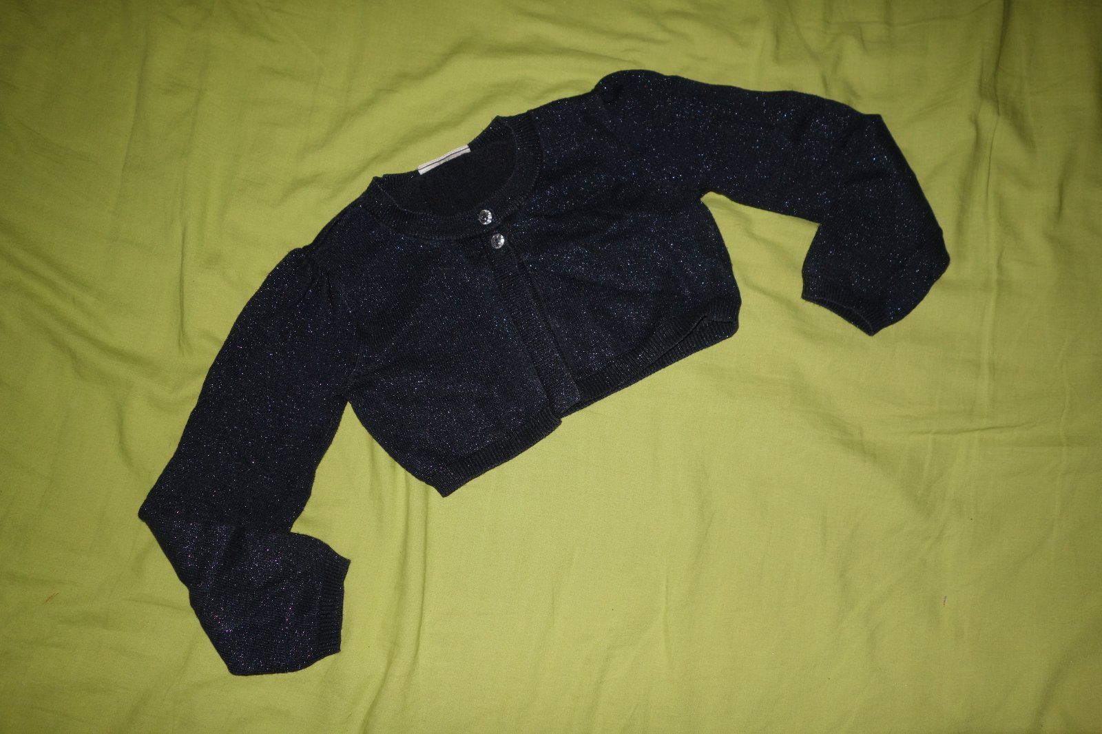 Pekne bolerko pretkavane lesklou nitkou vo velmi dobrom nosenom stave. Velkost je uvedena ako 110, ale podla mna je mensie.