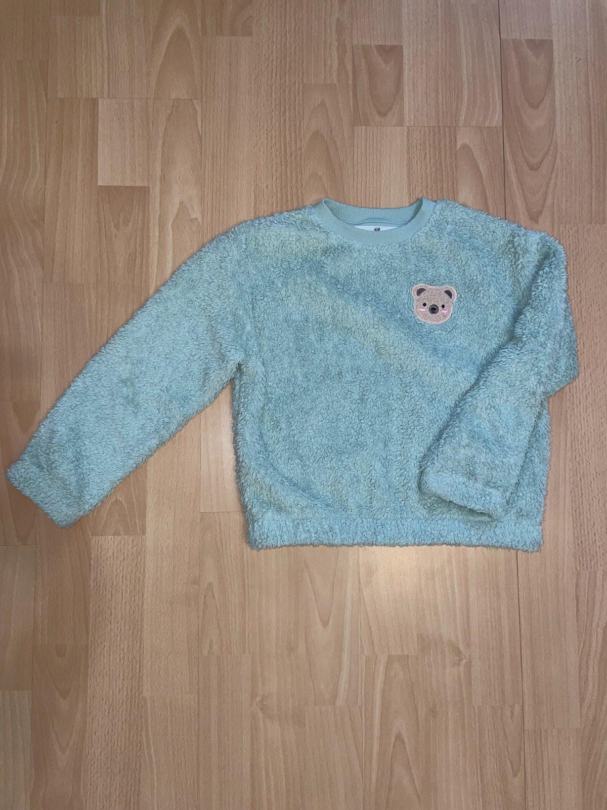 Predám teplú huňatú mikinu jemnej mintovej farby s aplikáciou medvedíka v dobrom nosenom stave. Na rukávoch jemne vidieť nosenie, inak krásna bez fľakov.