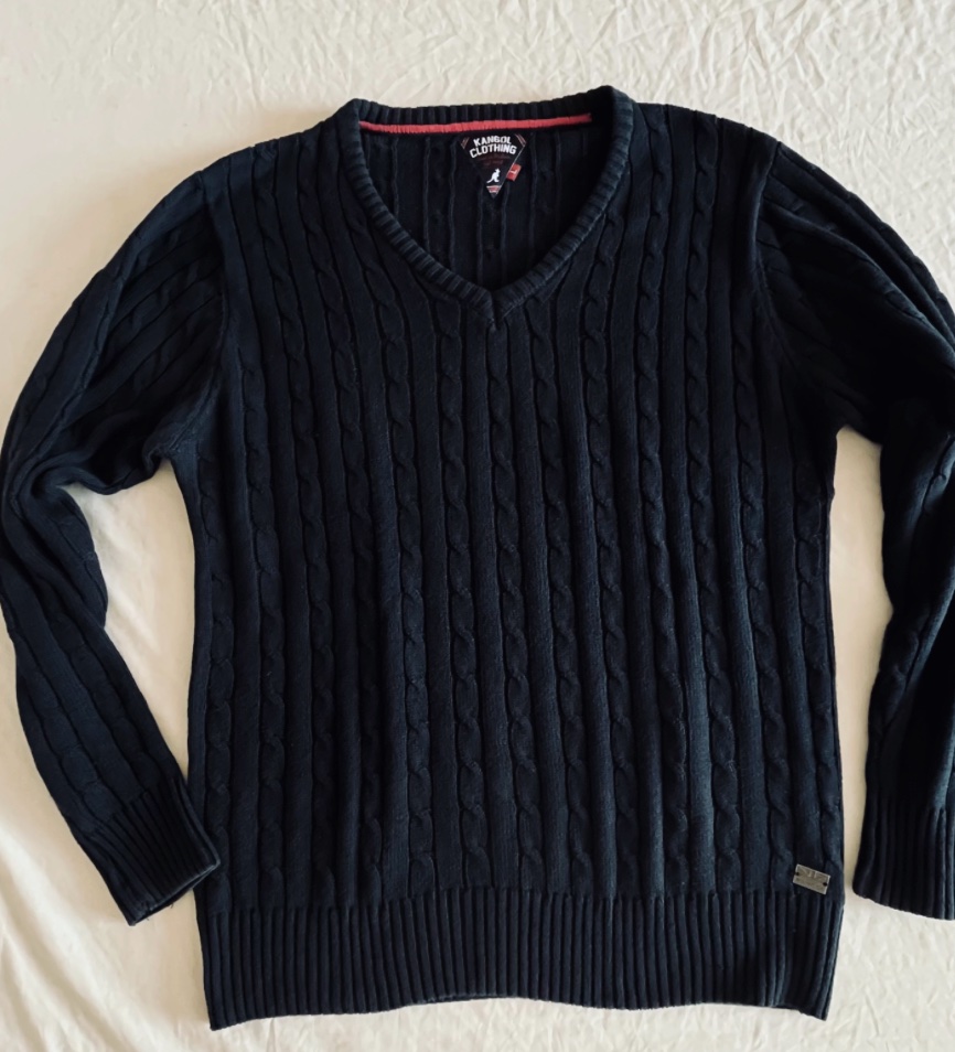 Predám pánsky pulóver o veľkosti L o rozmeroch celková dĺžka od krku je 69cm, šírka pazuch je 54cm, celková dĺžka rukáva od krku je 74cm cena 3 eura.