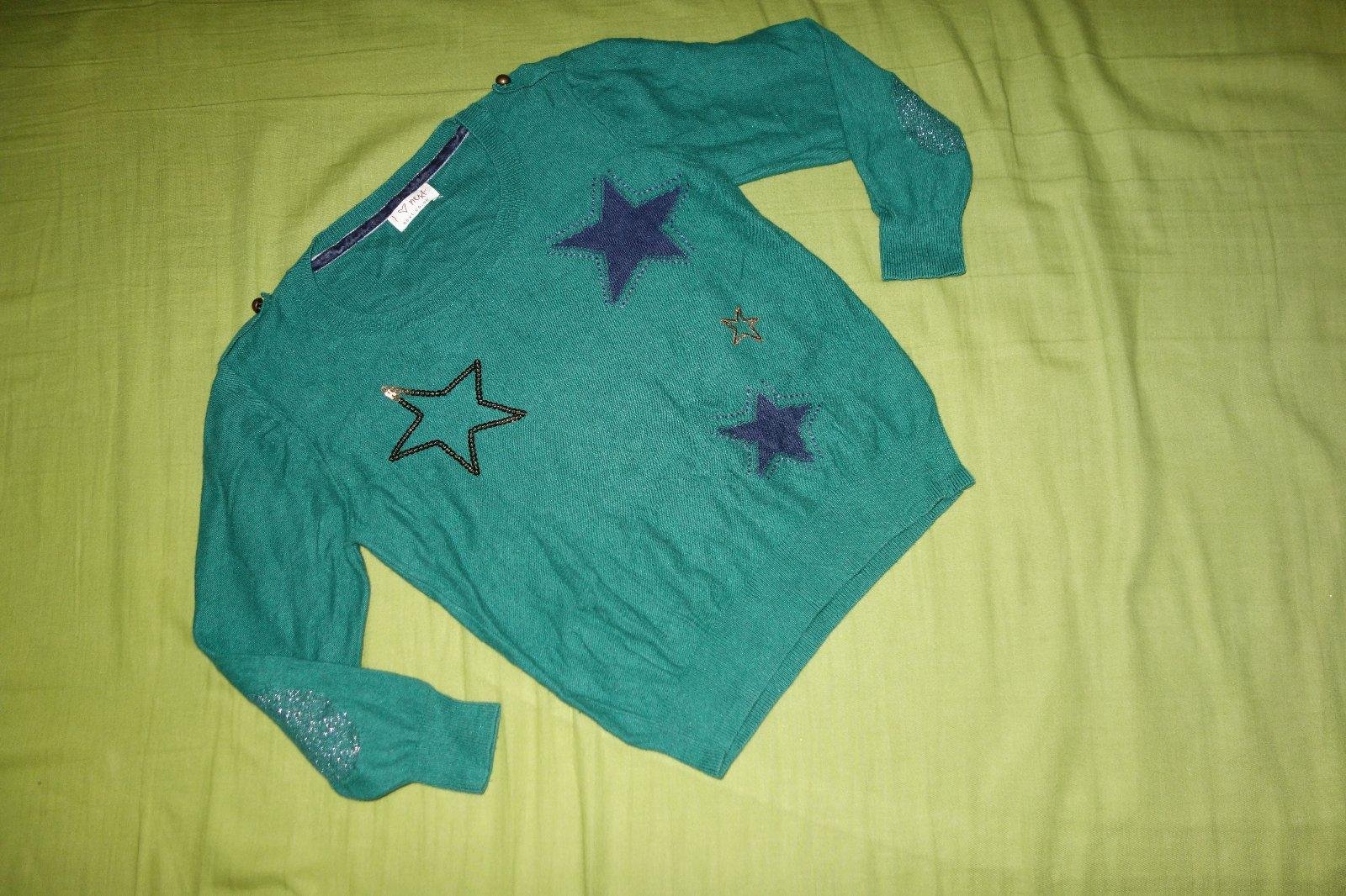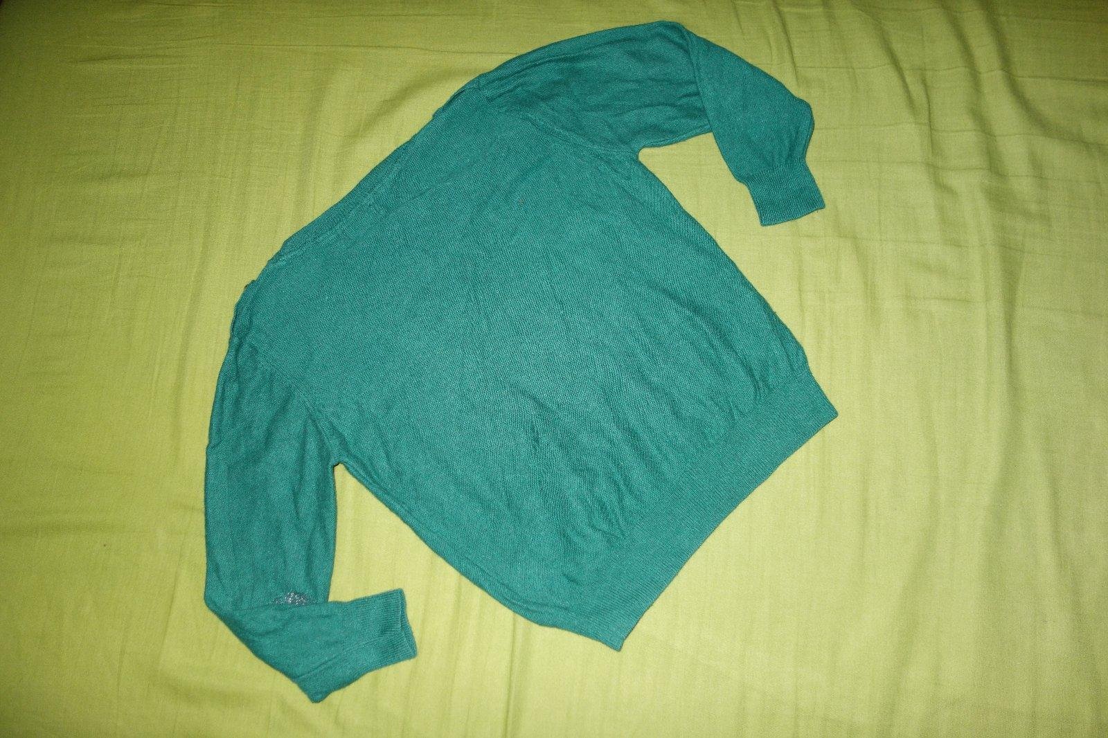 Krasny pulovrik vo velmi dobrom stave. Je tensi. Ma kratsie rukaviky. Je tyrkysovy, viac do zelena.Velkost je uvedena na 11-12rokov, ale je urcite mensi. 2