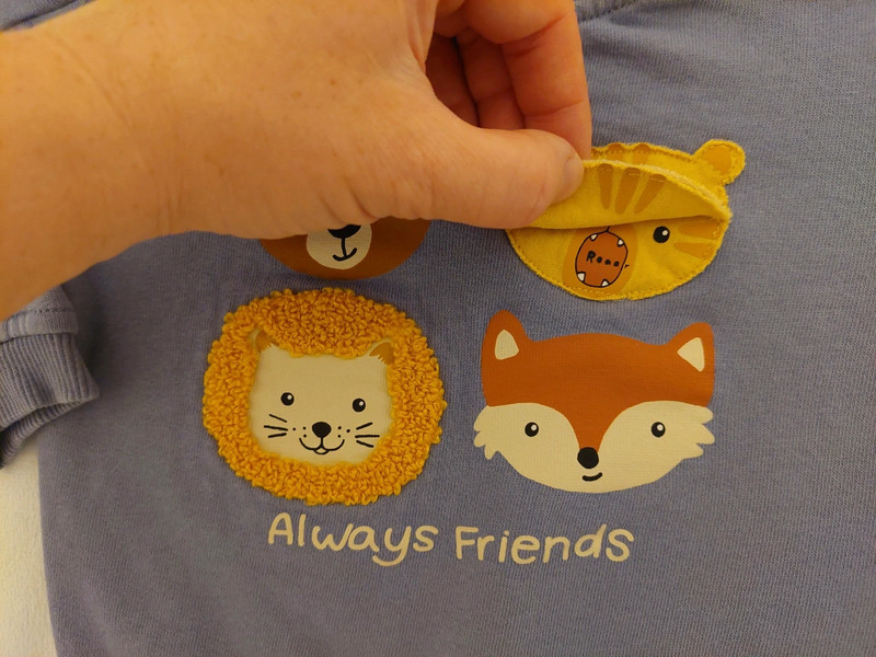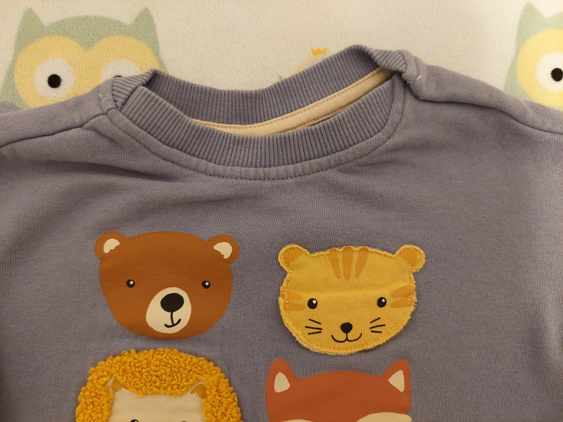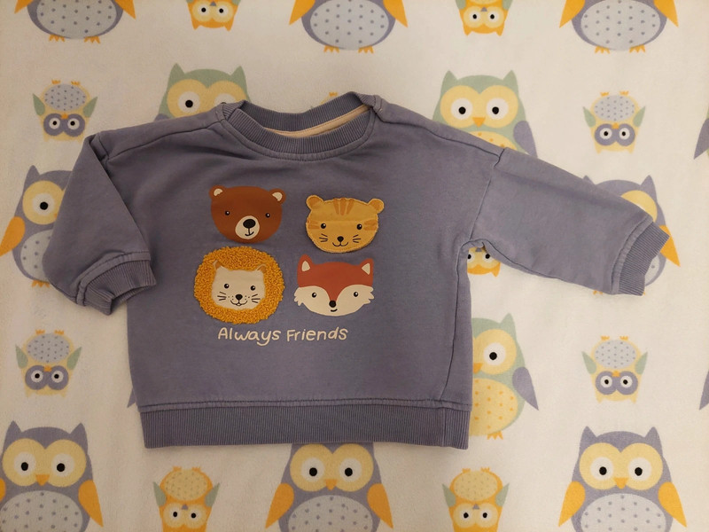 Mikinka so zvieratkami, zn. HM, veľ.68. Top stav, asi 2xoblečená bez poškodení a známok nosenia. Farba: modrošedá