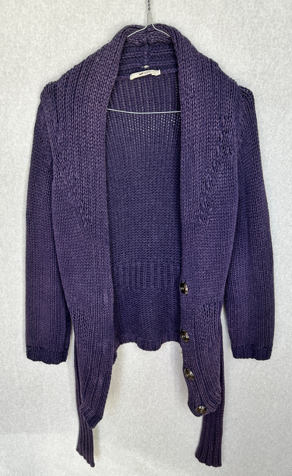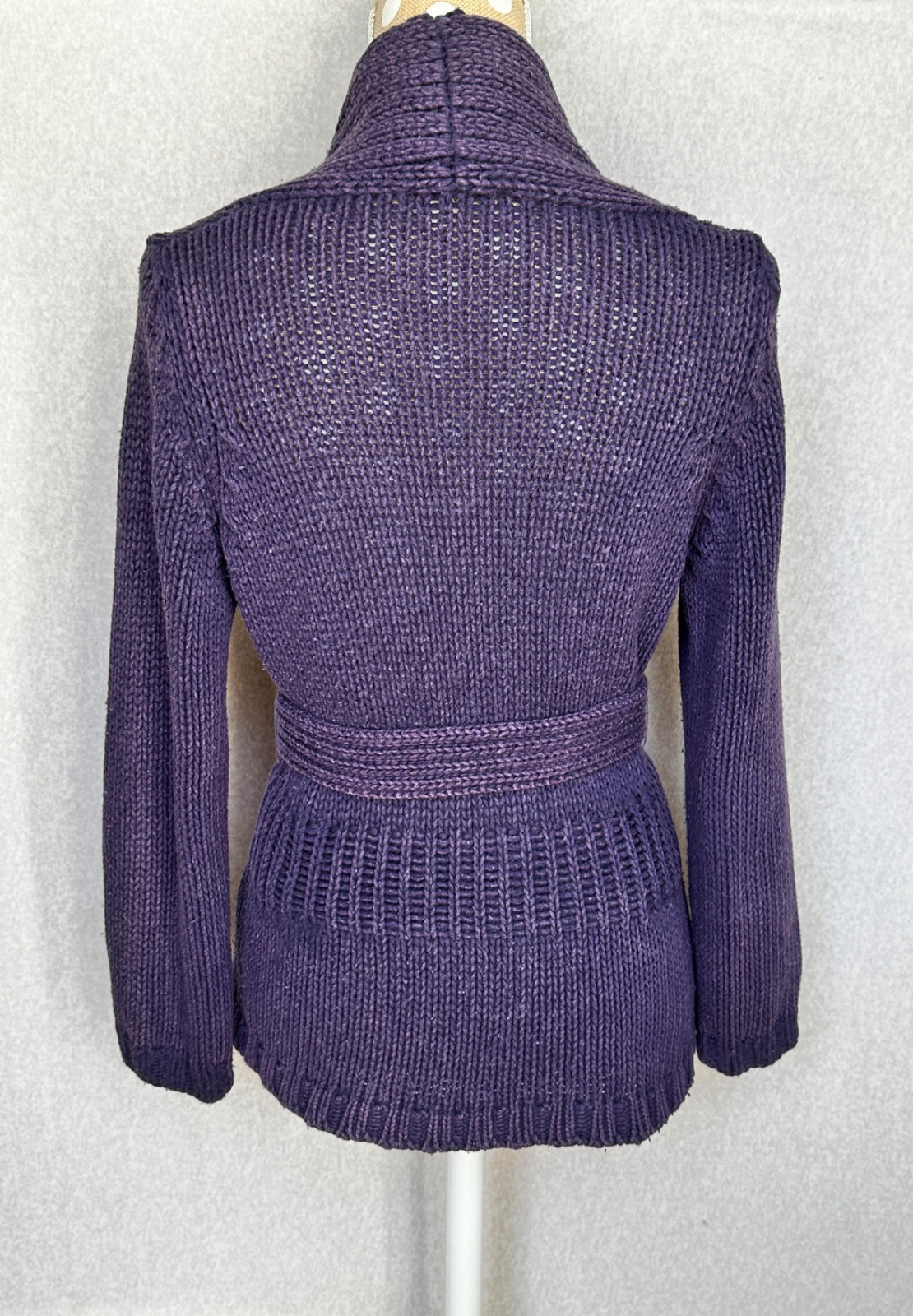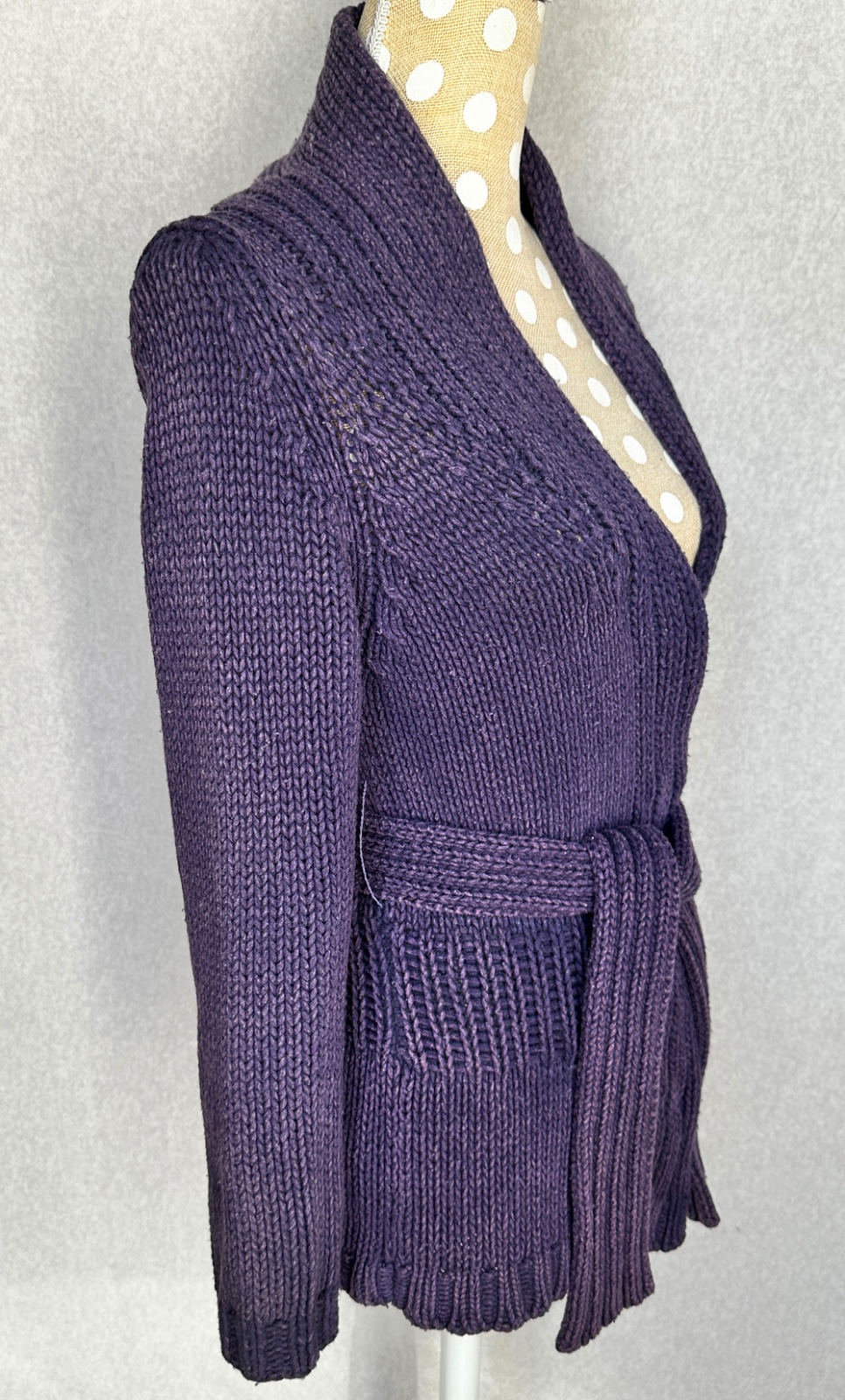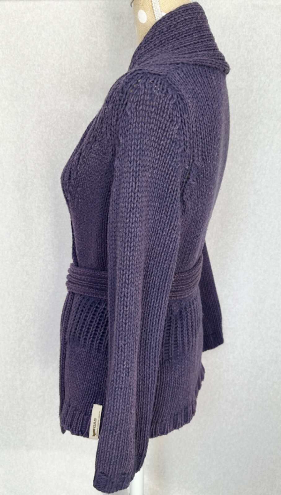 Kardigán so zapínaním na veľké skryté patentky s opaskom na previazanie v páse. Príjemný materiál - zmes vlny (45 %), bavlny (45 %) a polyamidu (10%). Vôbec nepichá, je veľmi hebký, príjemný na dotyk, aj na nosenie. Melír vo farbe patrí k štýlu, bol tak kúpený, nie je to chyba, či vynosenie. PC 189 Eur.