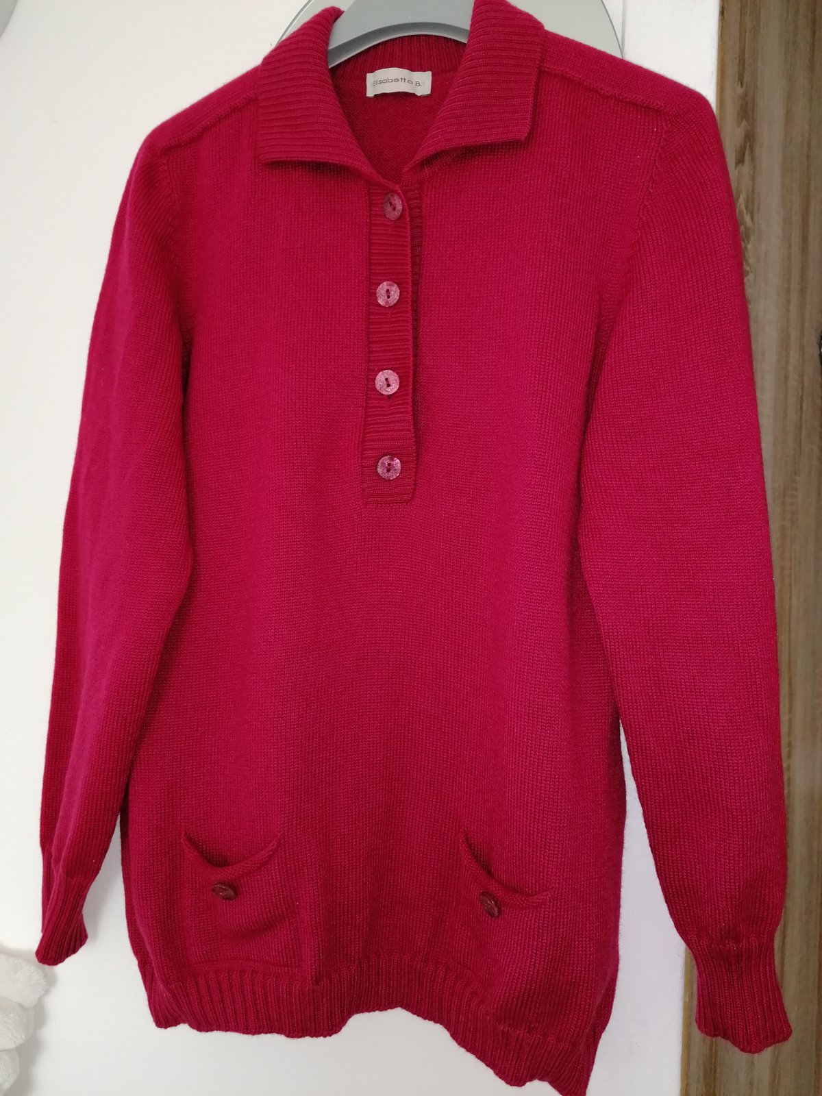 Predám pekný červený sveter, veľkosť L, cena 5 eur.