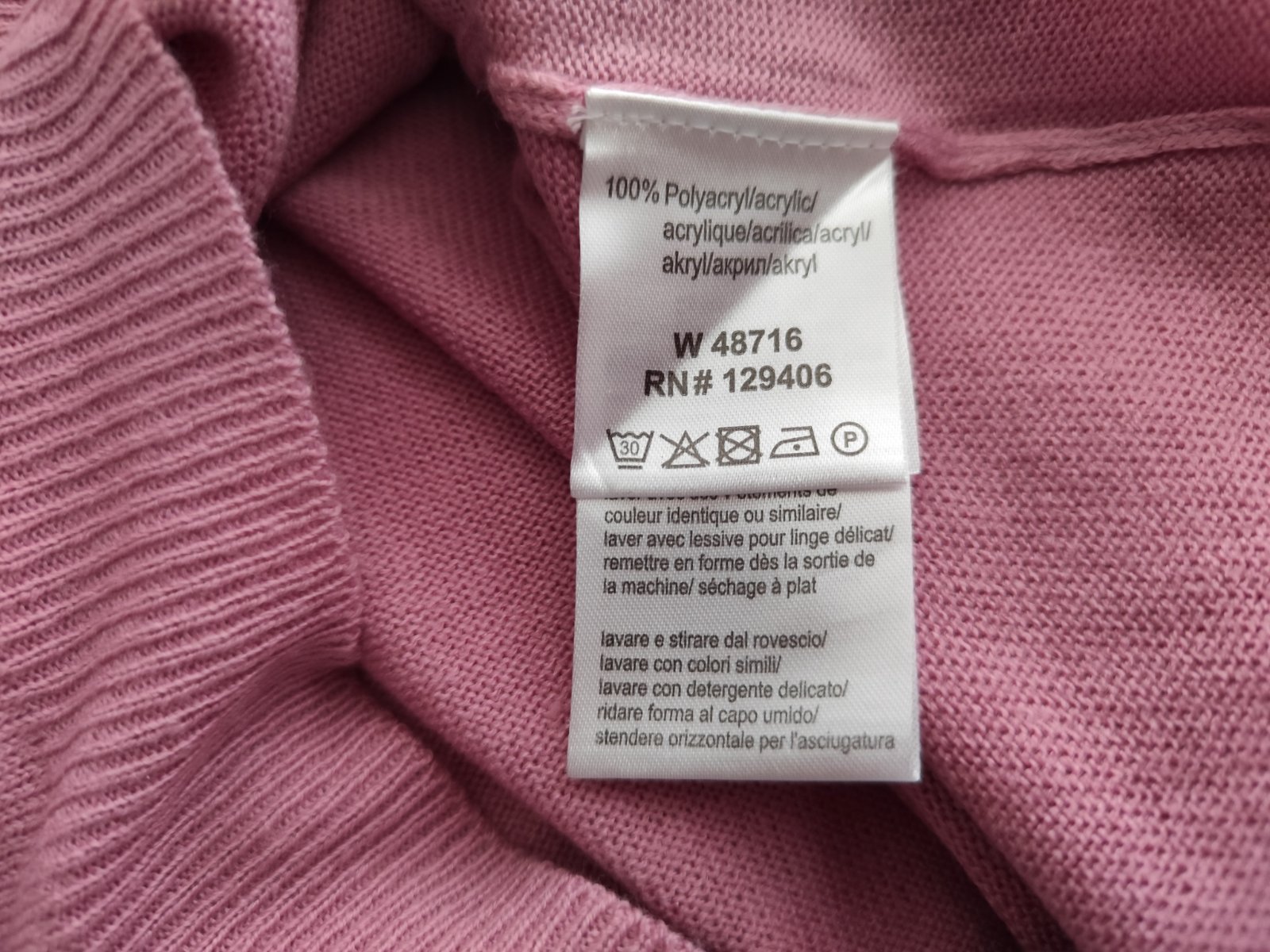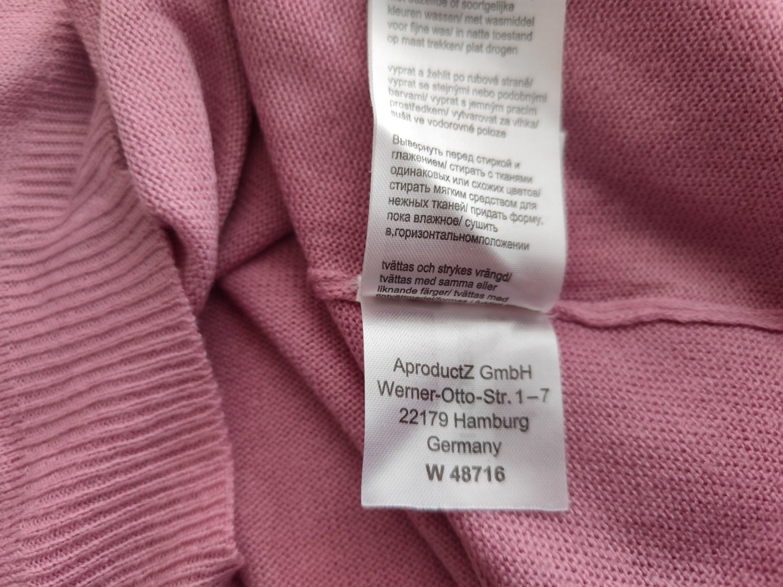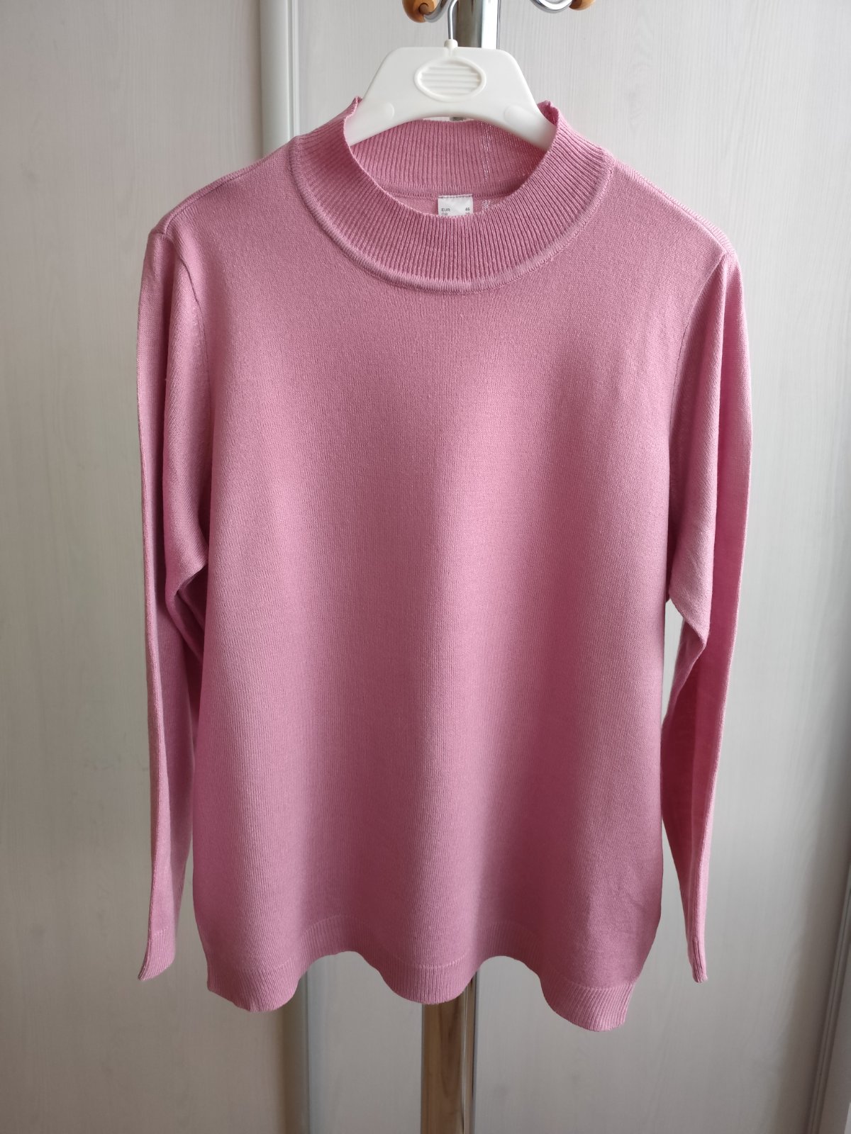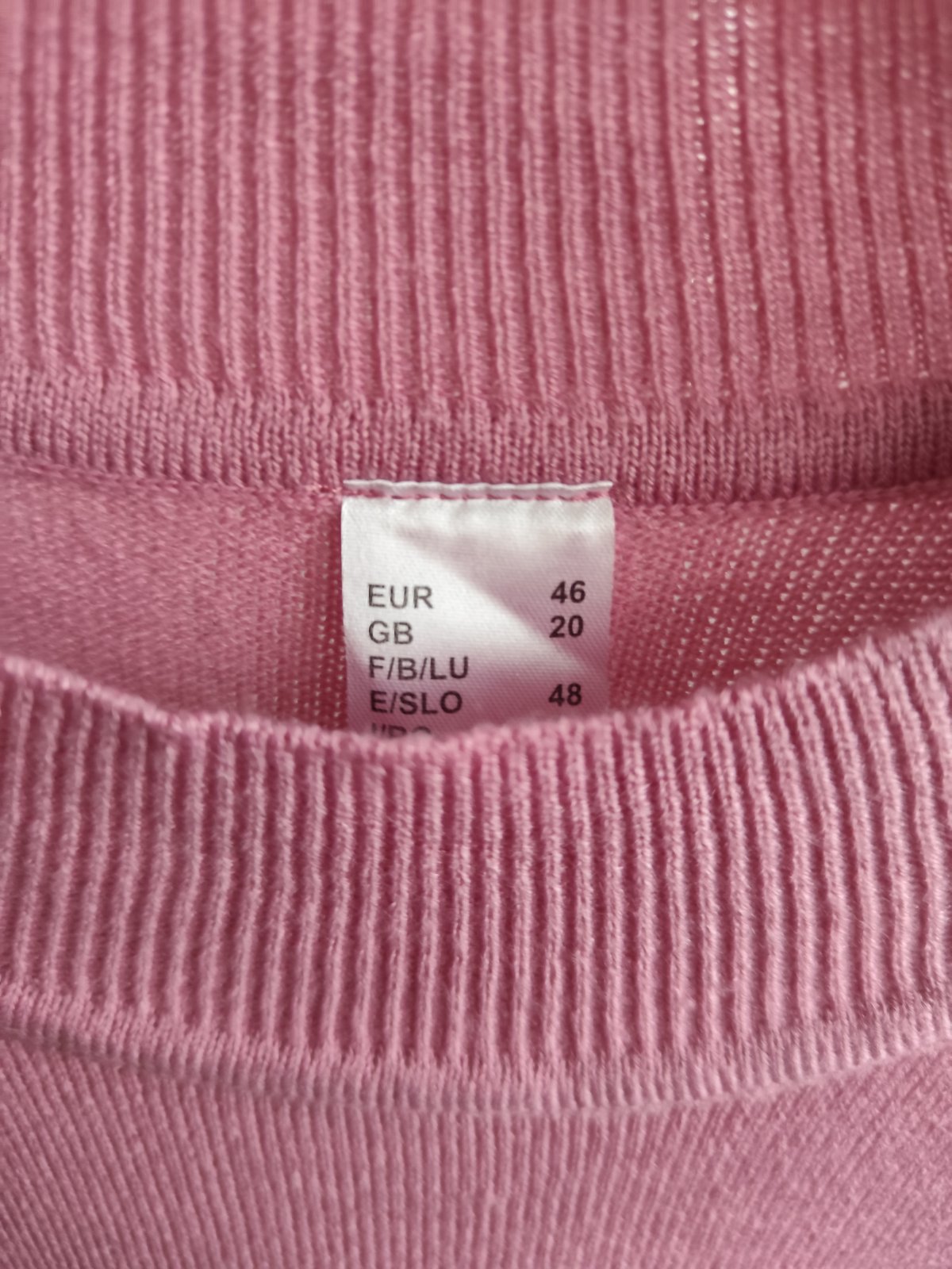 Dámsky tenký pulóver nemeckej značky označený č. 46. Je elastický, v kľude má cez prsia 2 x 58 cm ( povolí o 2 x 10 cm), dĺžka 69 cm. Preto som označila ako XL. Je so stojačikom, vhodný do kostýmov. Farba ako na foto, staroružová. Je vo výbornom stave.
