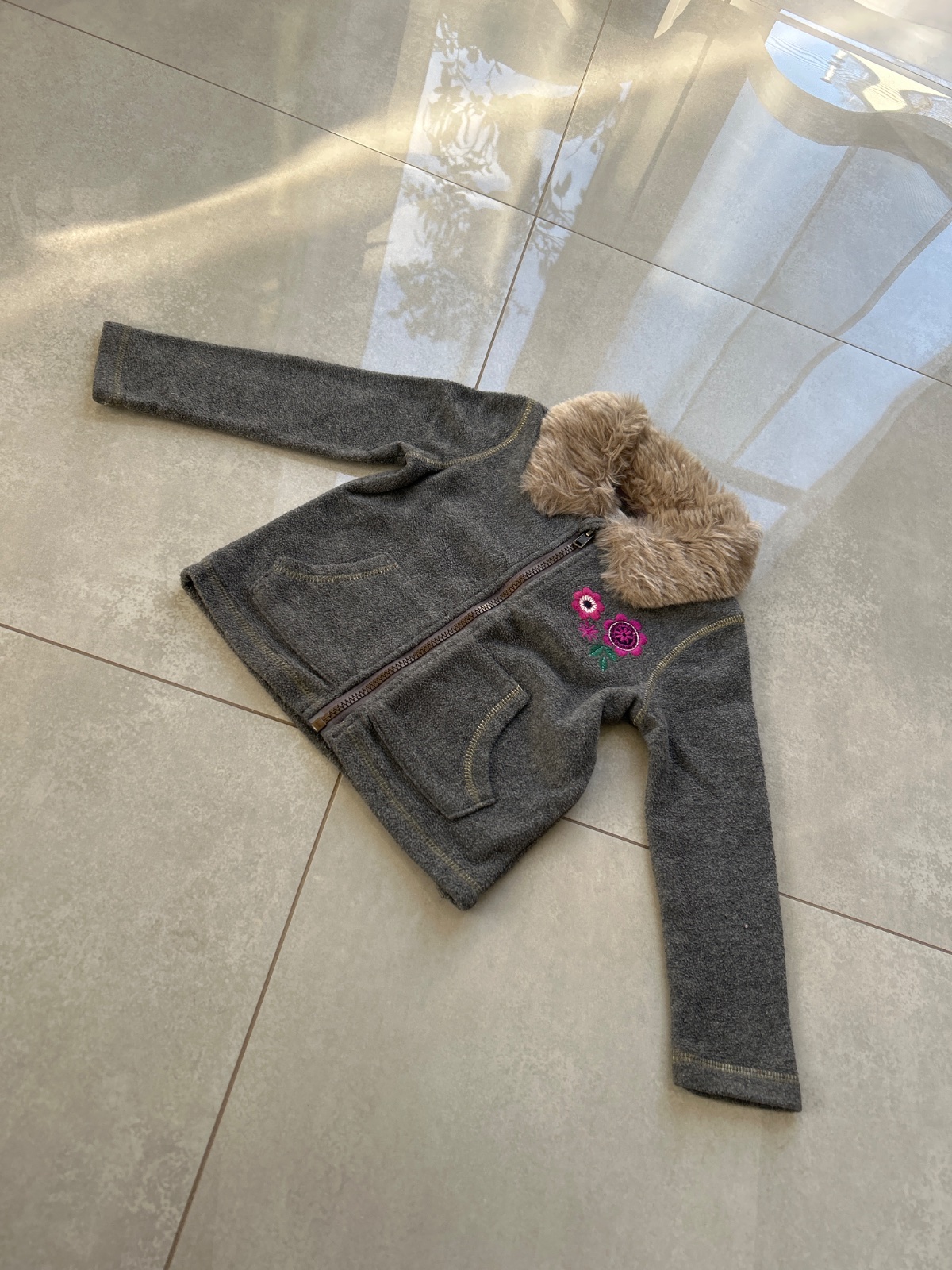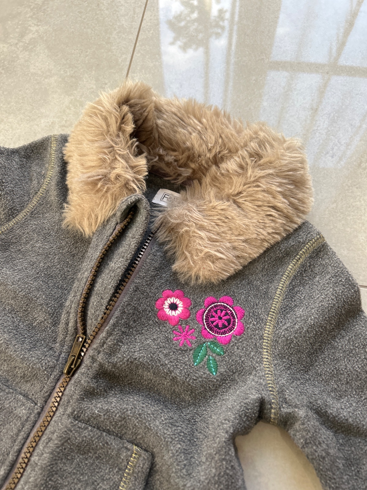 Hrejiva flisová mikina s kožušinovým límcom a vyšívanými kvietkami