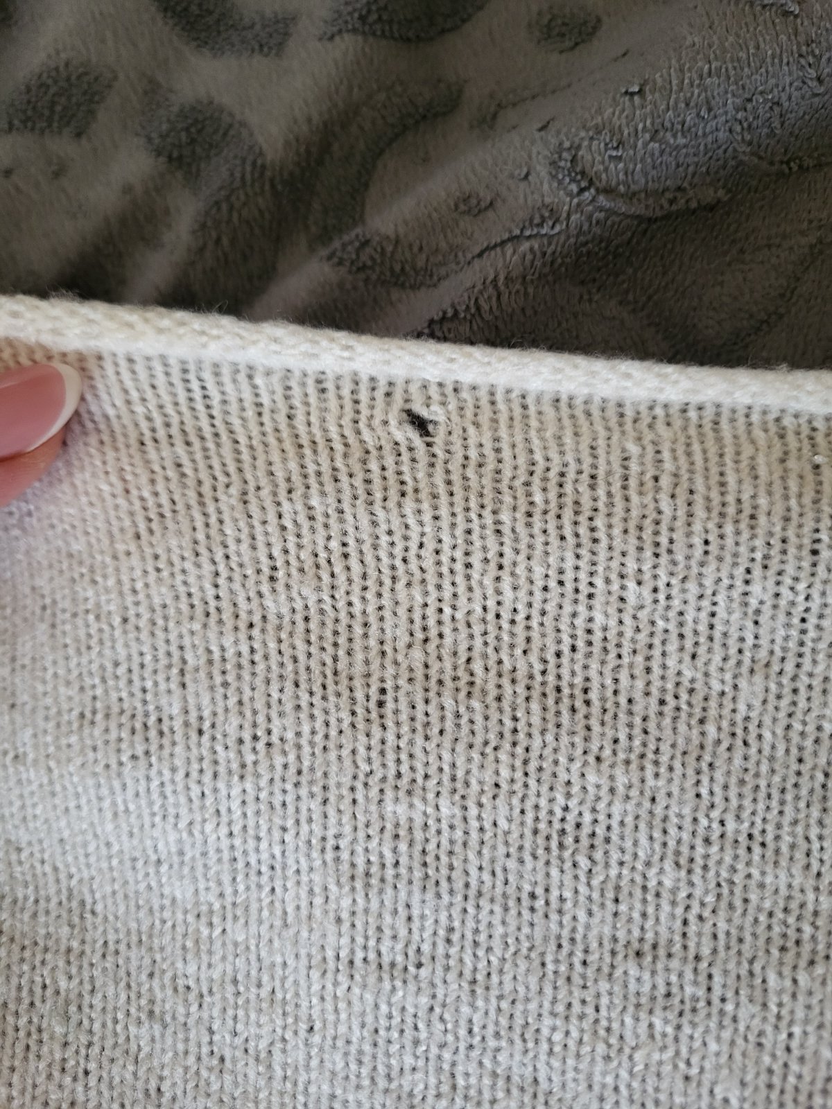 na chrbte má také 2 dierky viď fotky, je to v časti kde sú väčšinou vlasy tak to nie je vidieť až tak, kupovaný z bazáru taký mi už prišiel predpokladám, že dierka bude od visačky/štítku