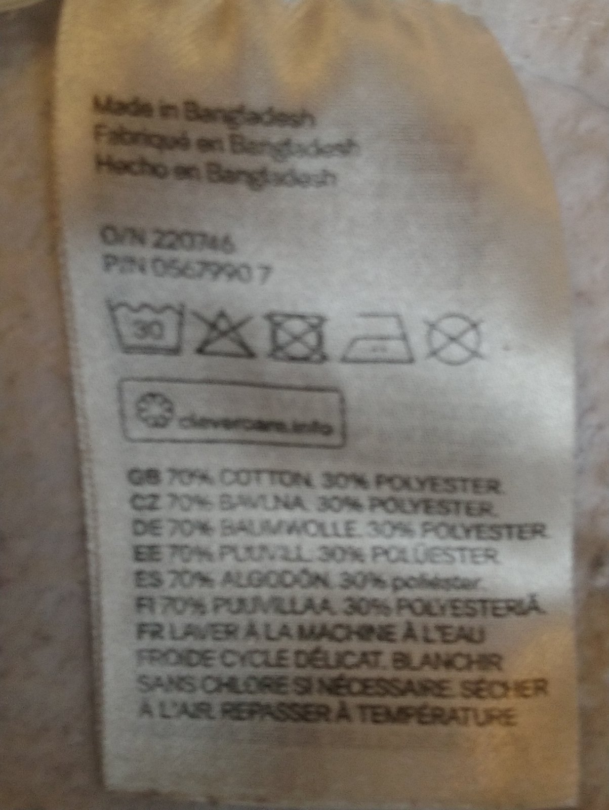 príjemný kvalitný materiál, zloženie: 70 % bavlna, 30 % polyester,