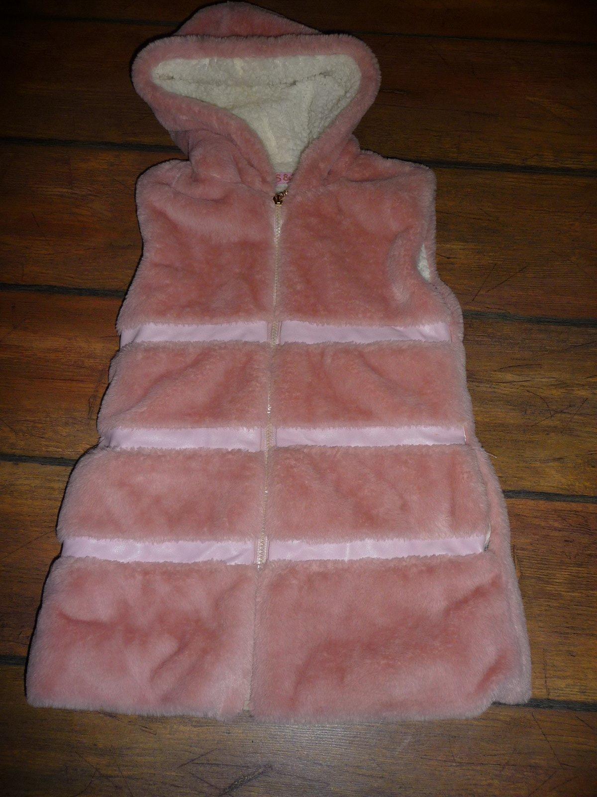 Bledoružová kožušinková vesta so zapínaním na gombík. Šírka na hrudniku je 35 cm,celková dĺžka 36 cm.
