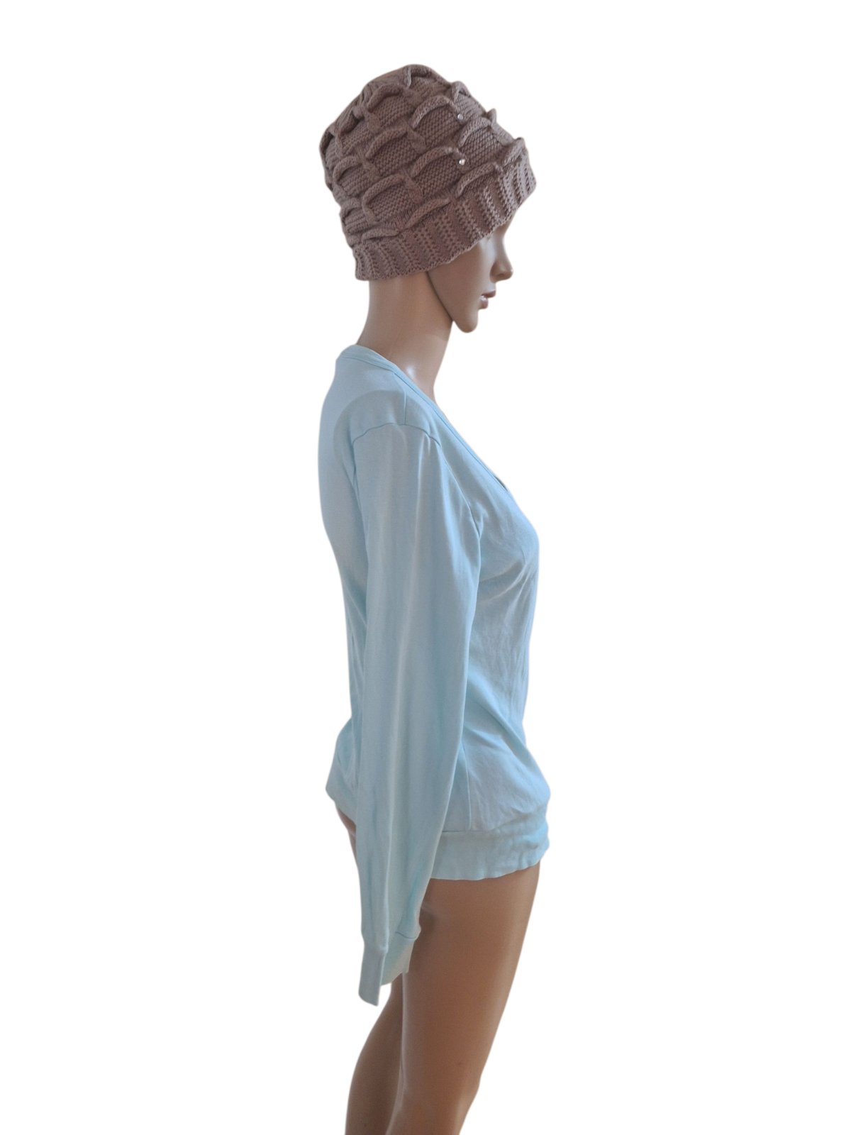 Dámsky bavlnený svetrík na zapínanie značky Guga. Je mierne elastický. Dĺžka je 60cm,obvod hrudníka je 102cm a obvod pása je 92cm. Dĺžka rukáva je od krku 70cm. kód 1482