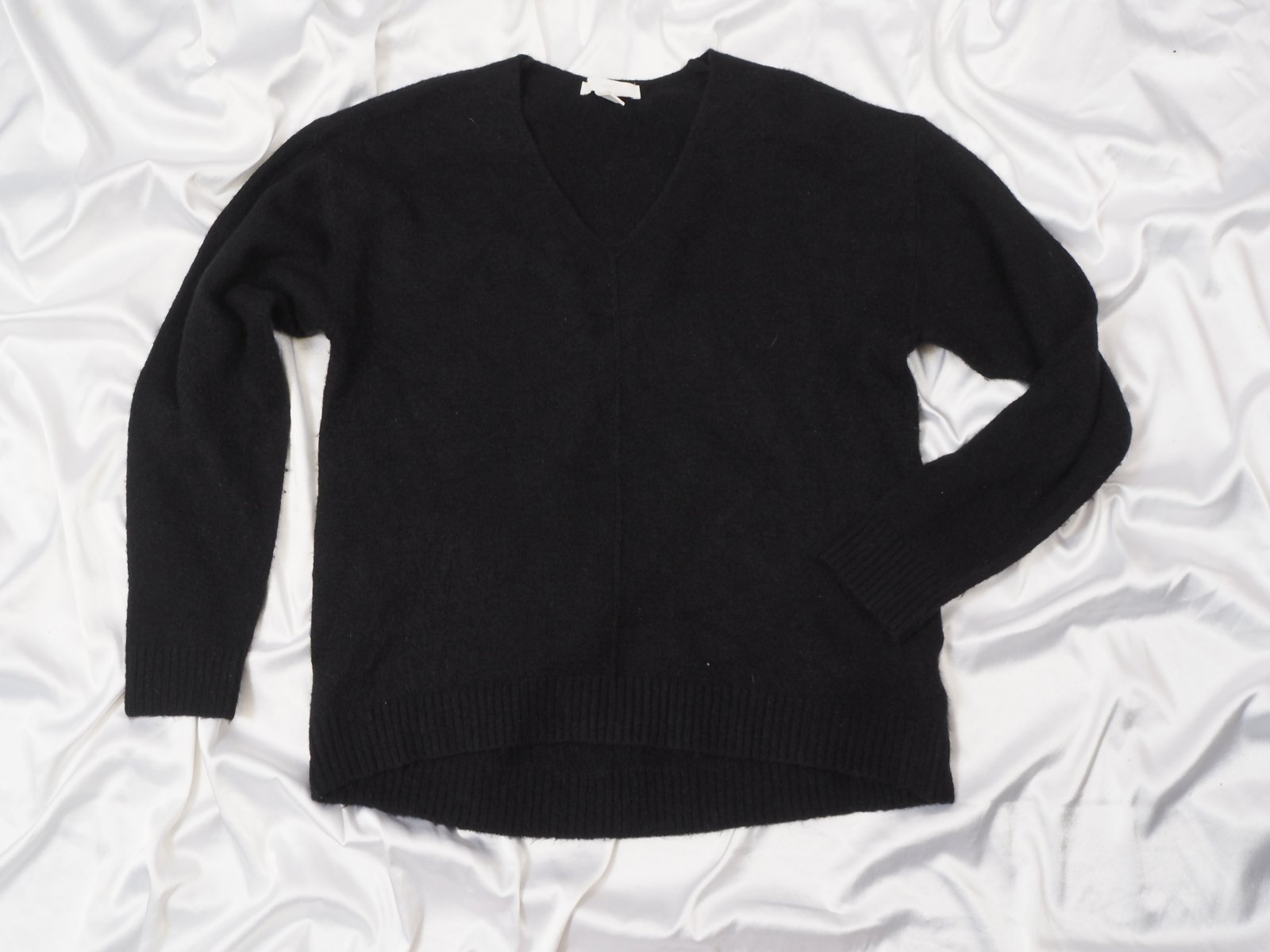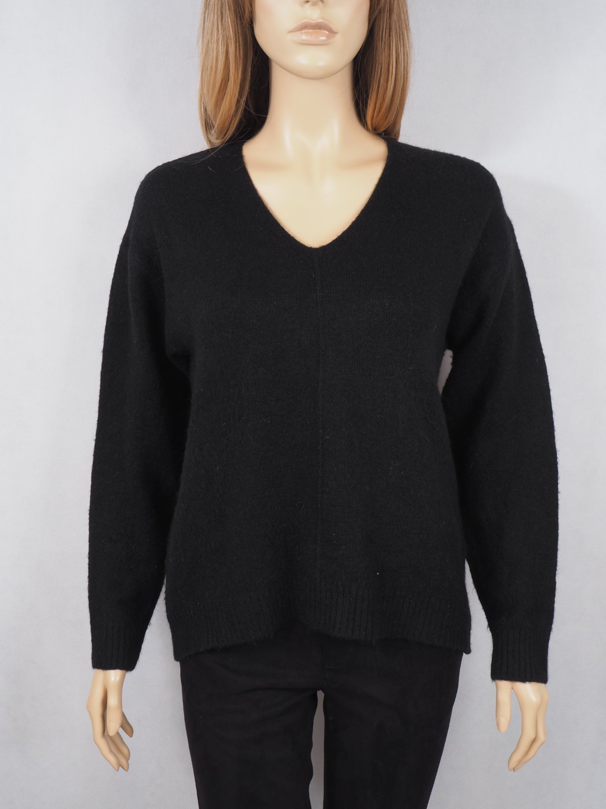 Kvalitný čierny makkúčky pulover, veľ. XS/S, oversize, materiál 52% akryl, 27% nylon, 12% polyester, 6% elastan, 3% vlna, super stav, ako nový.