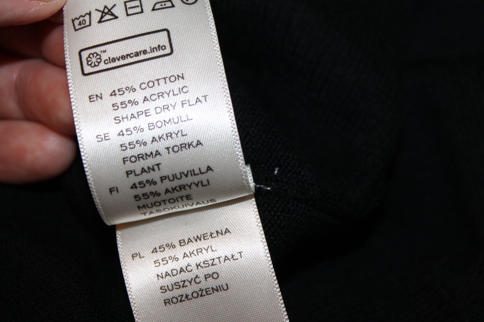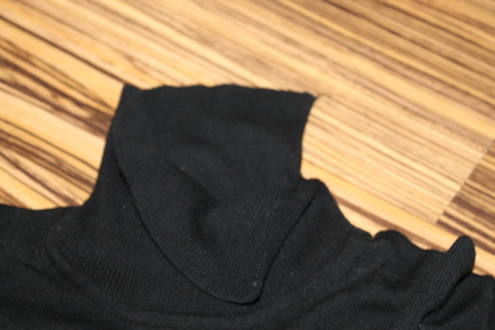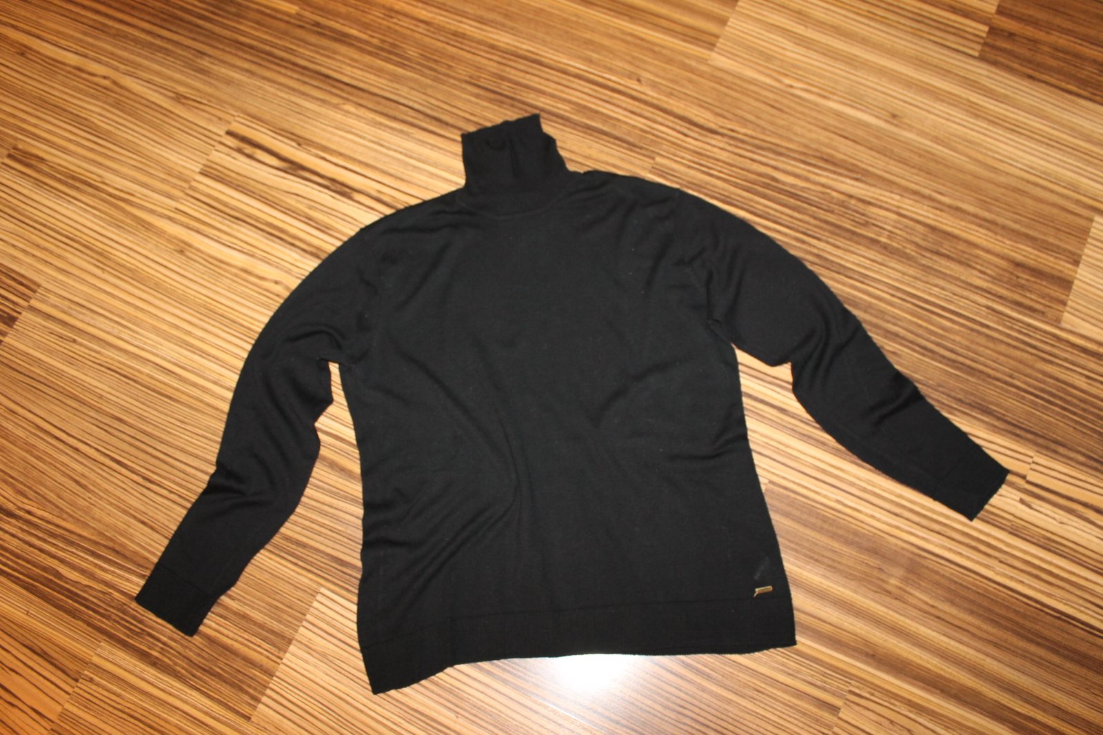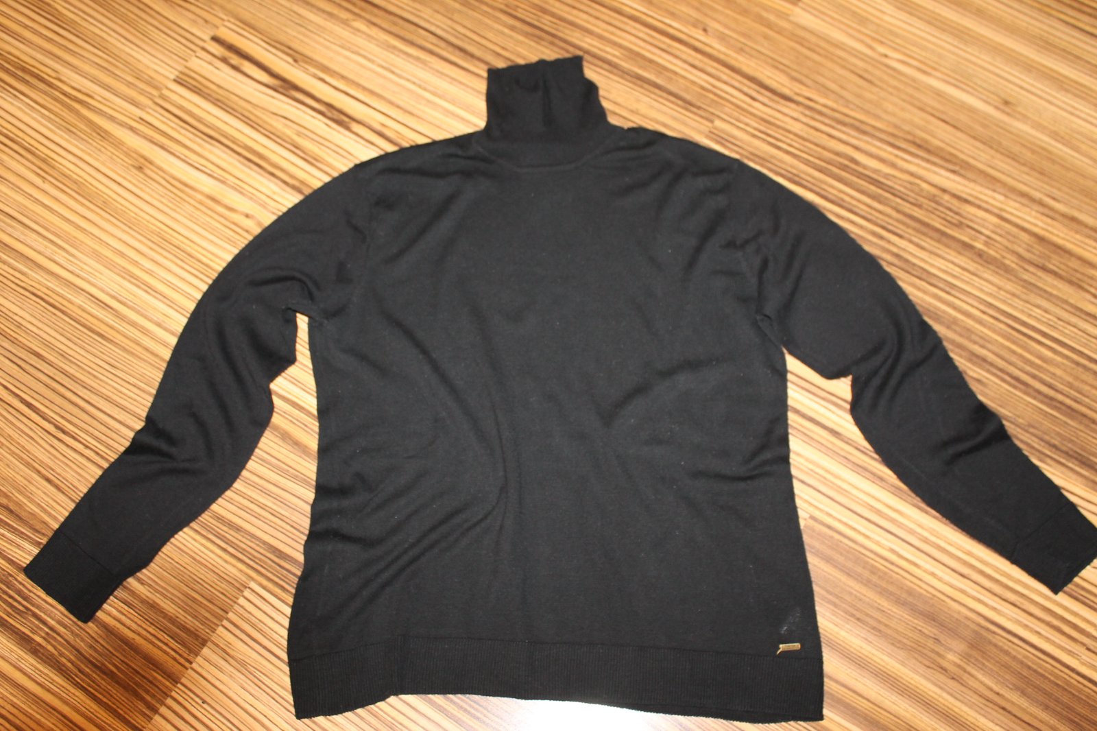 V super nosenom stave, miestami jemné žmolky, najmä pod pazuchami. Ink bez poškodení. Pekná čierna farba. 45% bavlna, 55% acryl. Veľ. L, RO: š 2x 60 cm, dl. 79 cm. Váha 277 g.