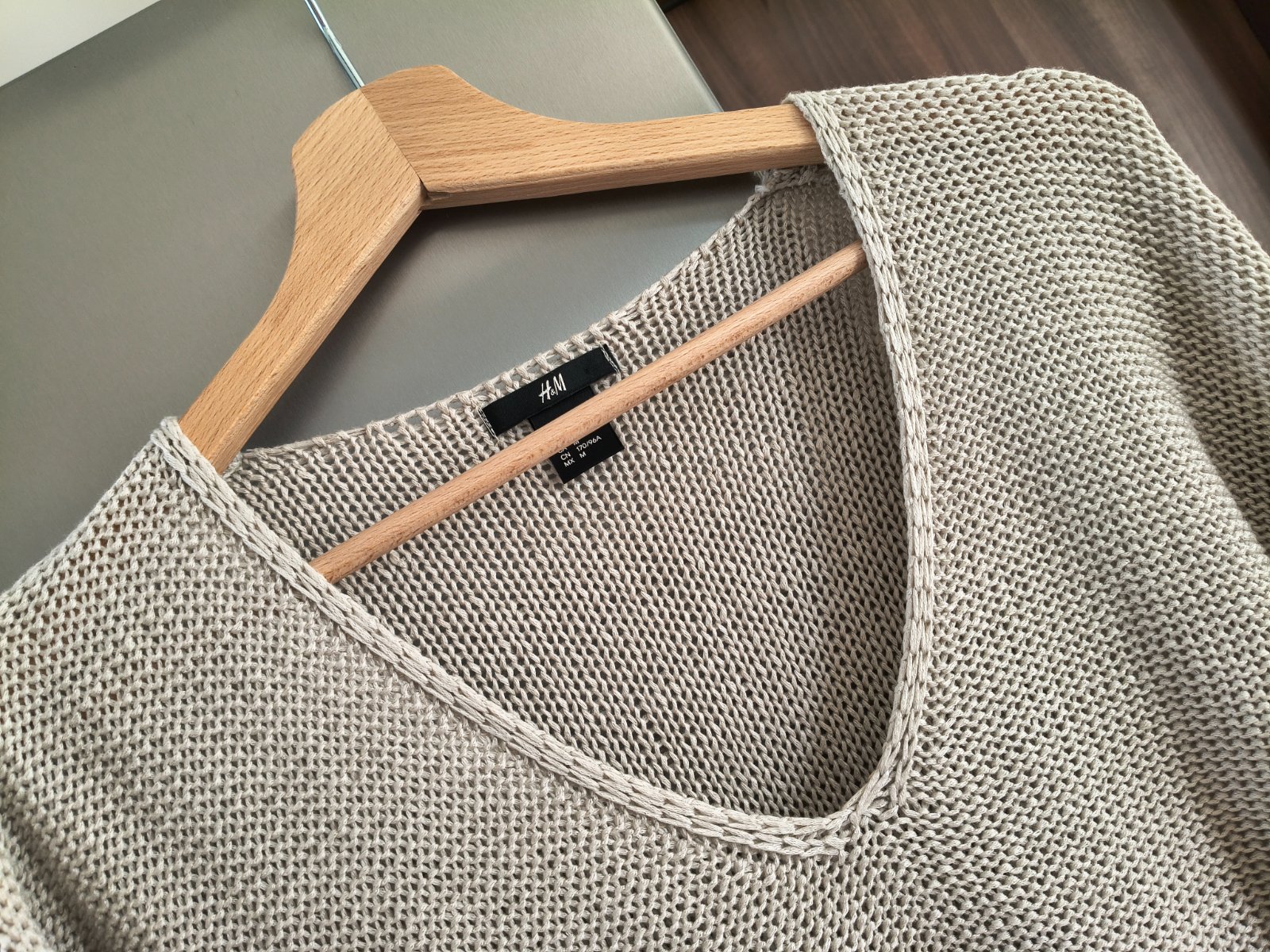 Predám nádherný voľný tenší jarný-letný oversize sveter,je ako nový bez známok nosenia,veľkosť písaná M, sedí aj na L-XL,farba sivo béžová