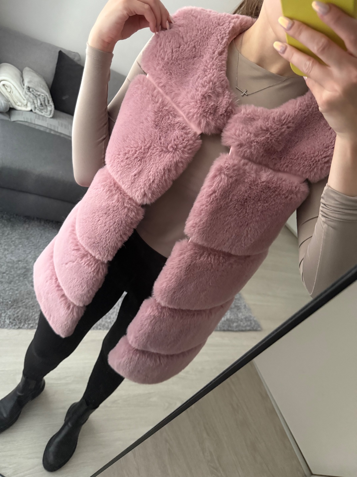 Ružová kožušinková vesta