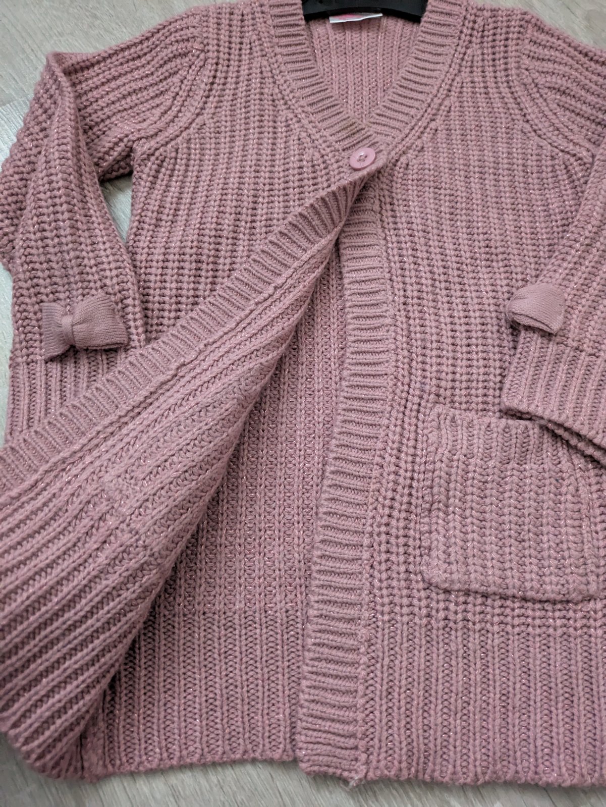 Krásny dlhý dievčenský sveter so zapínaním na jeden gombík. Bez poškodenia, ako nový. Ideálne osobný odber BA Petržalka.