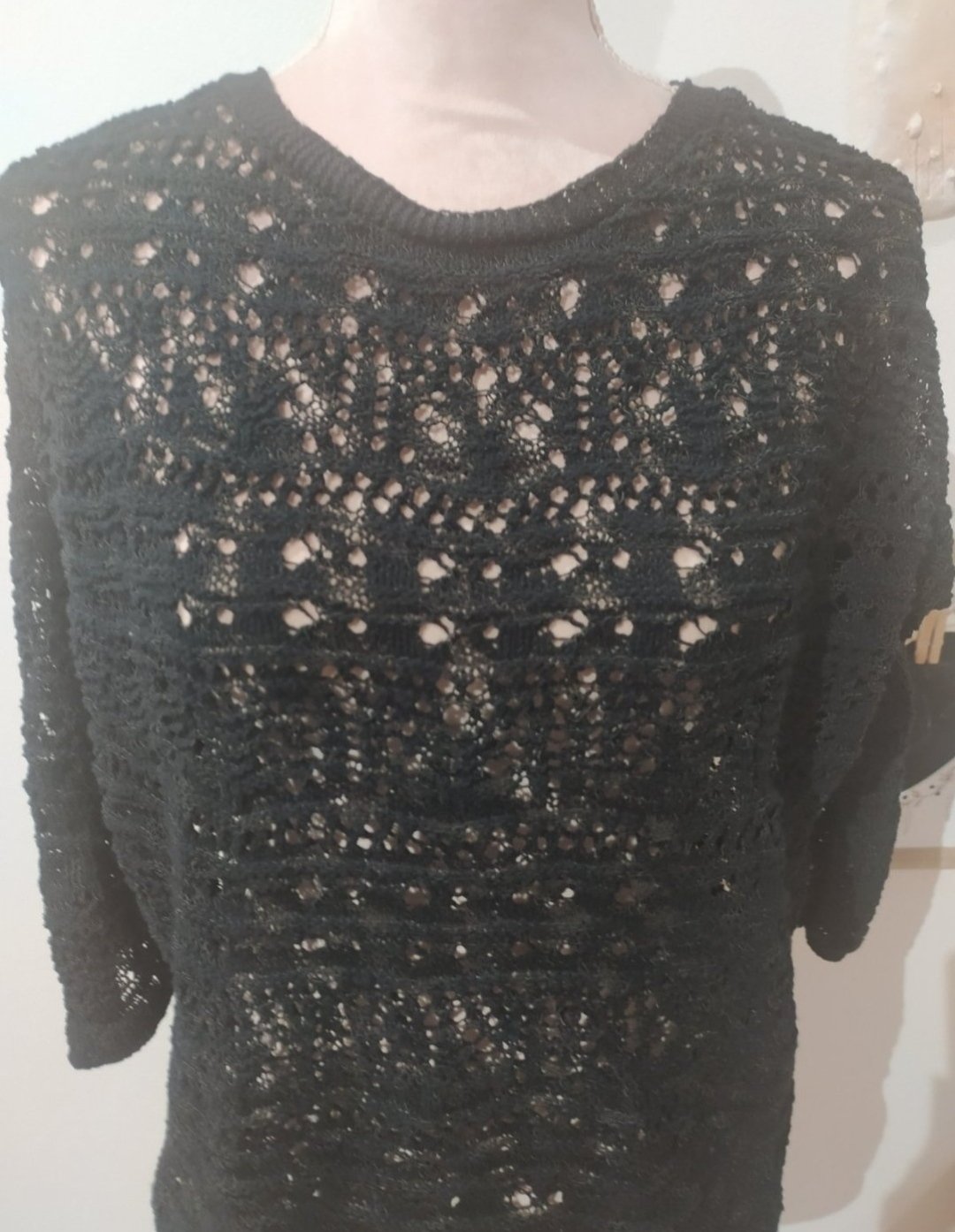 Krásny niťák, motýli rukáv, je nádherný a najlepšie sedí na postave M aj menšie L. Priadza kvalitná, vhodný aj na “slušnejšiu” príležitosť 😊 Prsia 100- 110 cm, dĺžka 59 cm a rukáv dĺžka 43 cm. Pate...