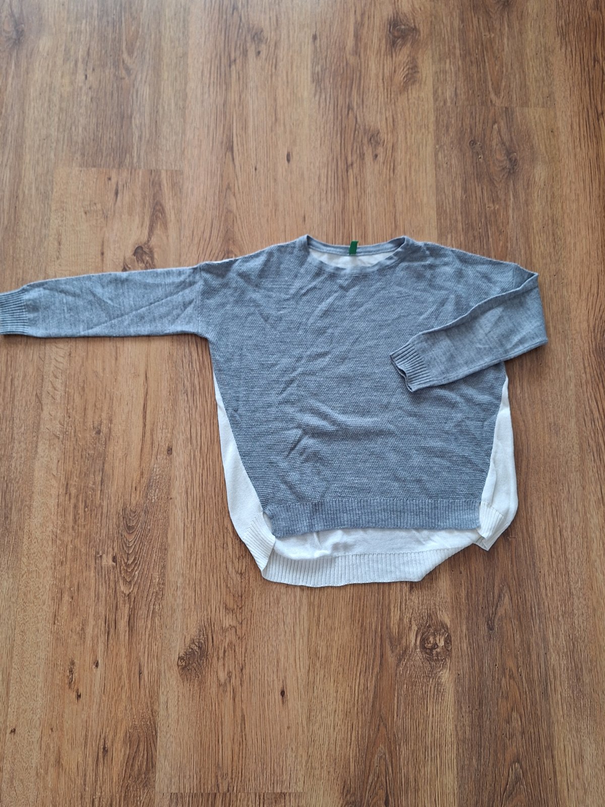 Jarný úpletový pulóvrik so zaujímavým dizajnom, zozadu je celý biely. Dobrý stav.