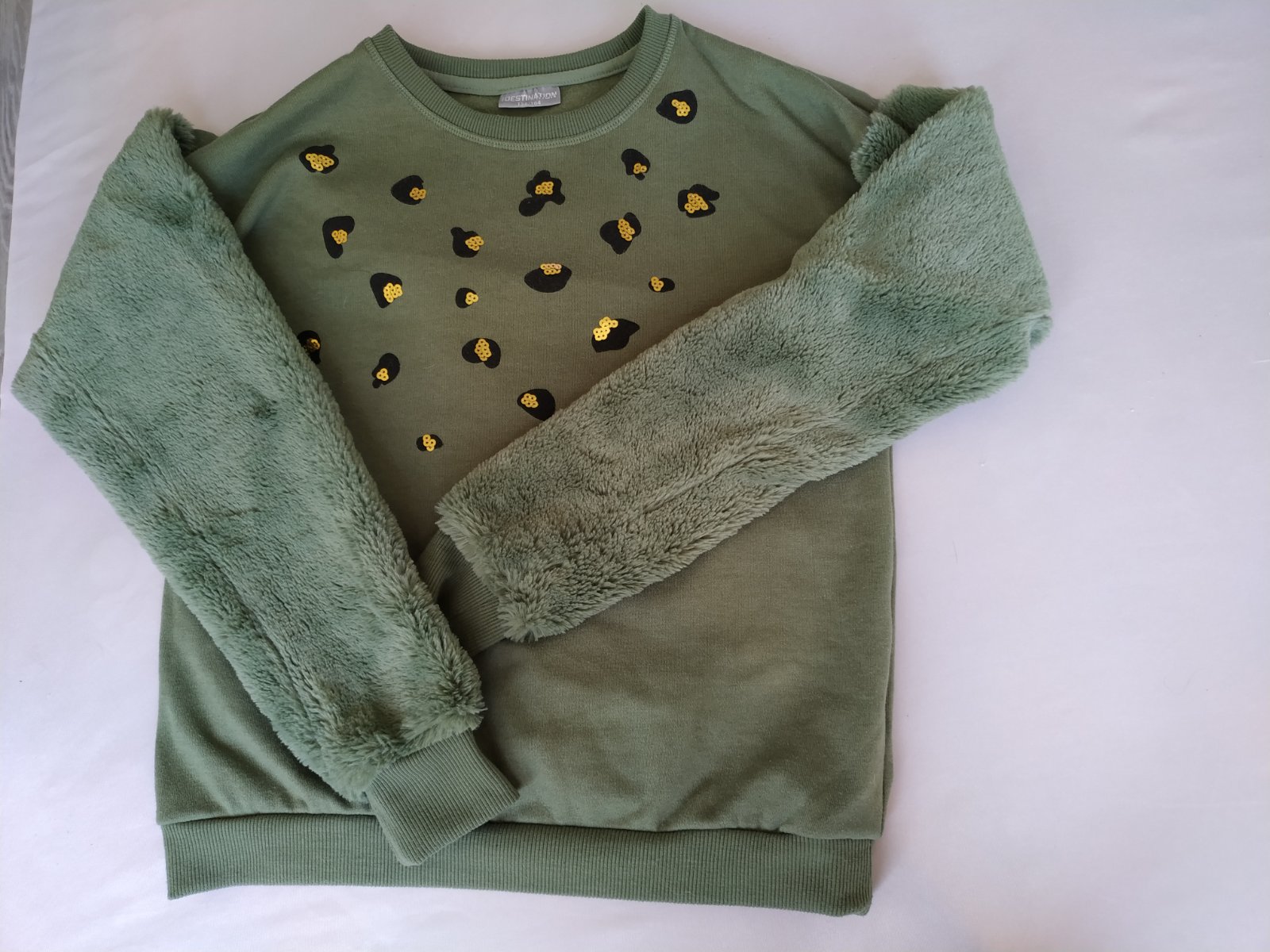 Pekná, teplučka mikina, rukávy chlpaté a zlata aplikácia. Nám uz mala