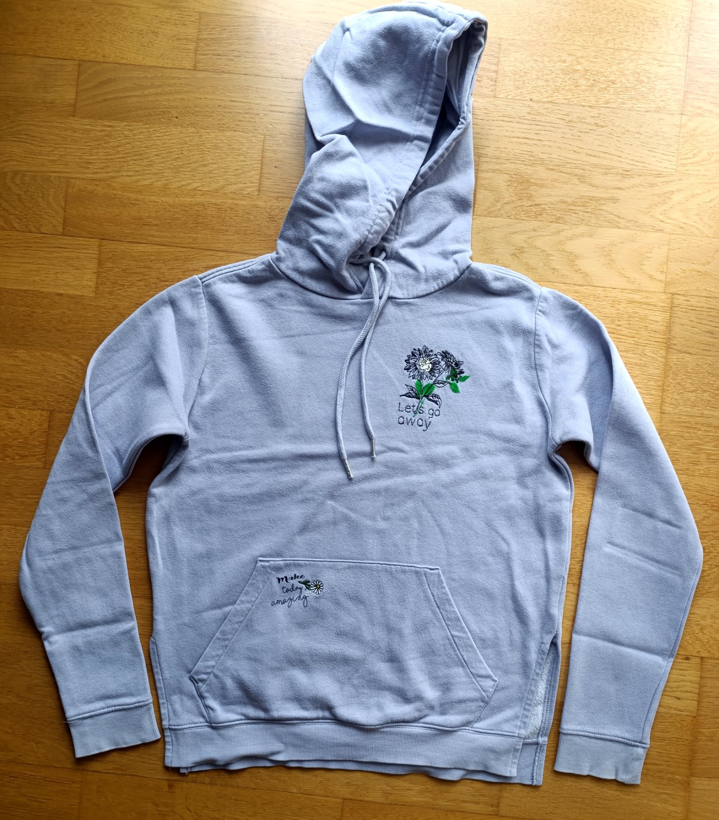 Farba je svetlofialová, nie je do šeda. Mikina je v dobrom nosenom stave, akurát má drobn0 žmolčeky z prania. Žiadne poškodenia, ani vyšúchané miesta. Na bokoch drobné rozparky.