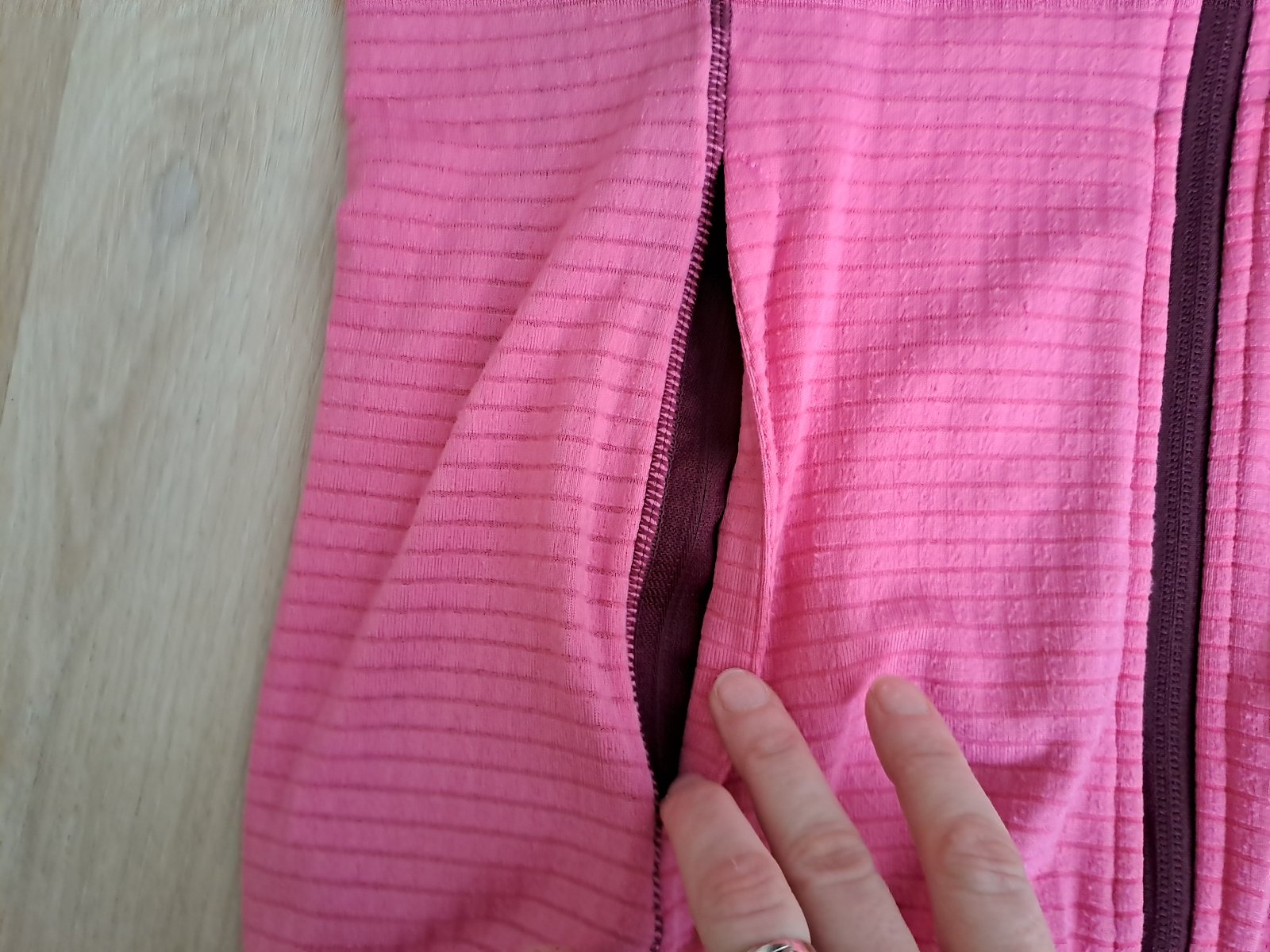 Bola oblečená max. 10-krát, nemá žiadne poškodenia, materiál pustil trošku mierne chĺpky. Mne nesedí farba.