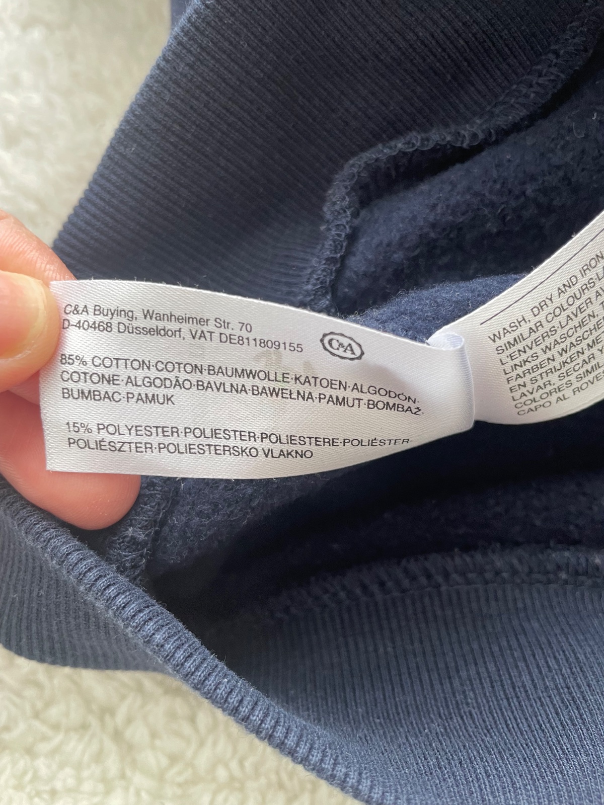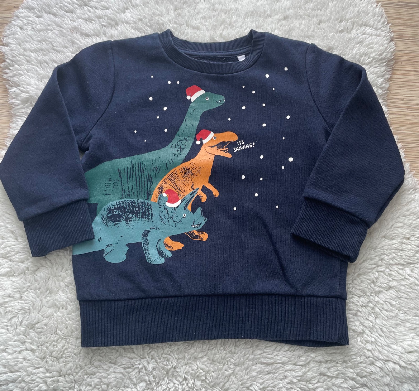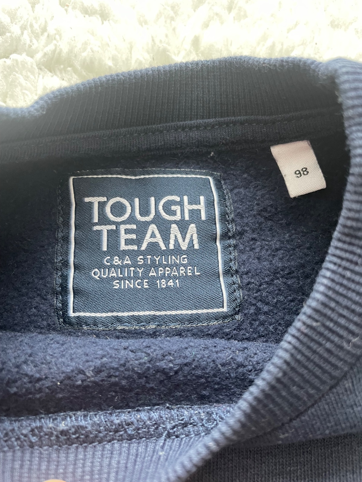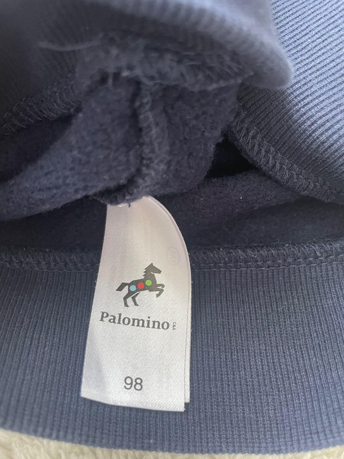 Tmavomodra mikina s potlacou, s pocesanym vnutrom, bez dier a flakov a pracieho chlpu, raz oblecena, veljost 98
