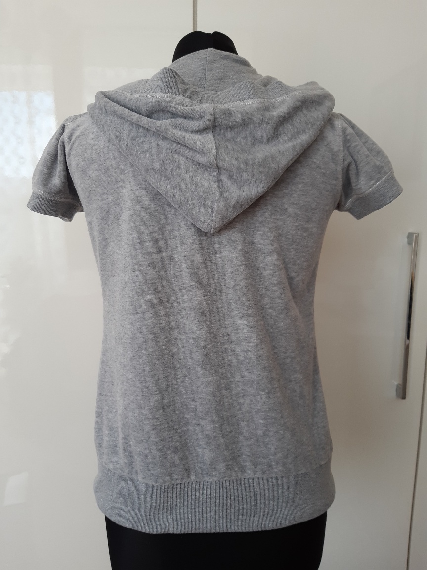 vesta, alebo mikinka s krátkym rukávom... Materiál vyzerá trochu akoby zamatový, mäkký, hebký... 80% bavlna, 20%polyester. DL. 57 cm, šírka cez prsia 42x2 cm. Vesta je vo veľmi dobrom stave, bez poškodenia. Pri nákupe tovaru nad 10€ darujem na vyžiadanie.