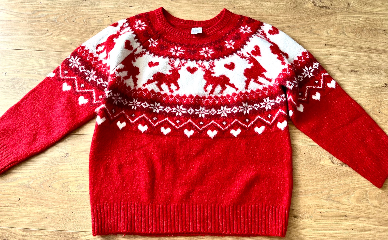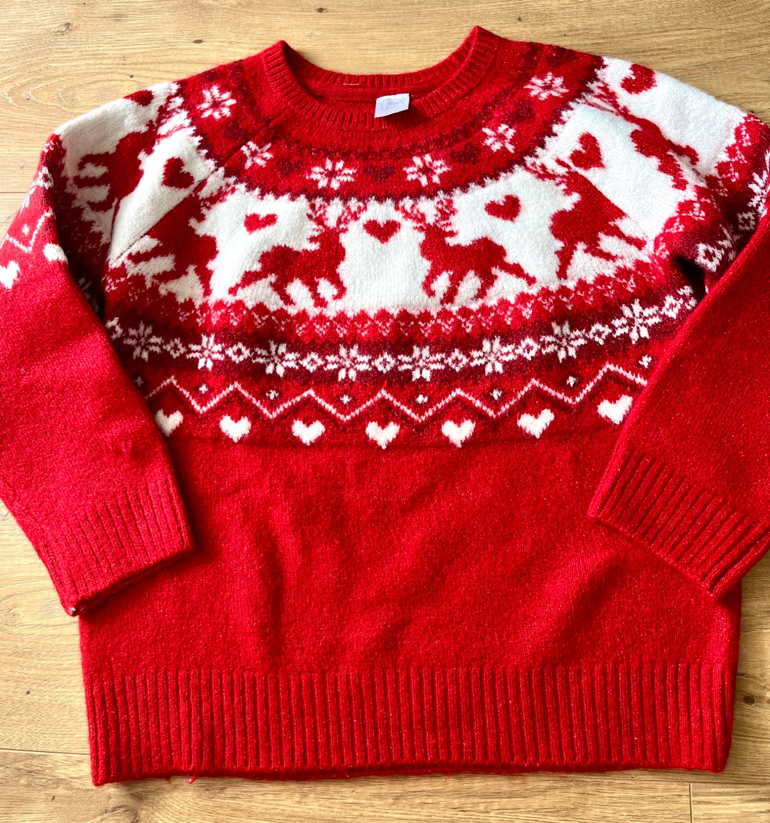 Krasny svetrík, malo noseny, nestíhali sme vynosit