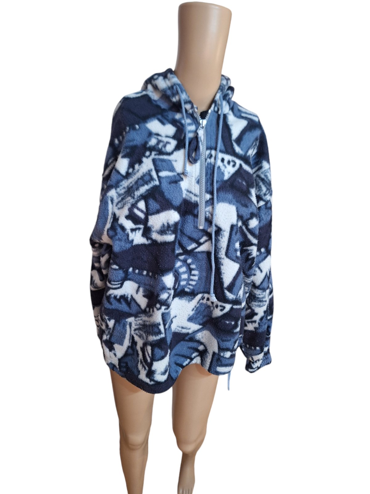 Detská flišová bundička s kapucňou. Dĺžka je 65cm,obvod hrudníka je 106cm a obvod pása je 108cm. Dĺžka rukáva je od krku 75cm
