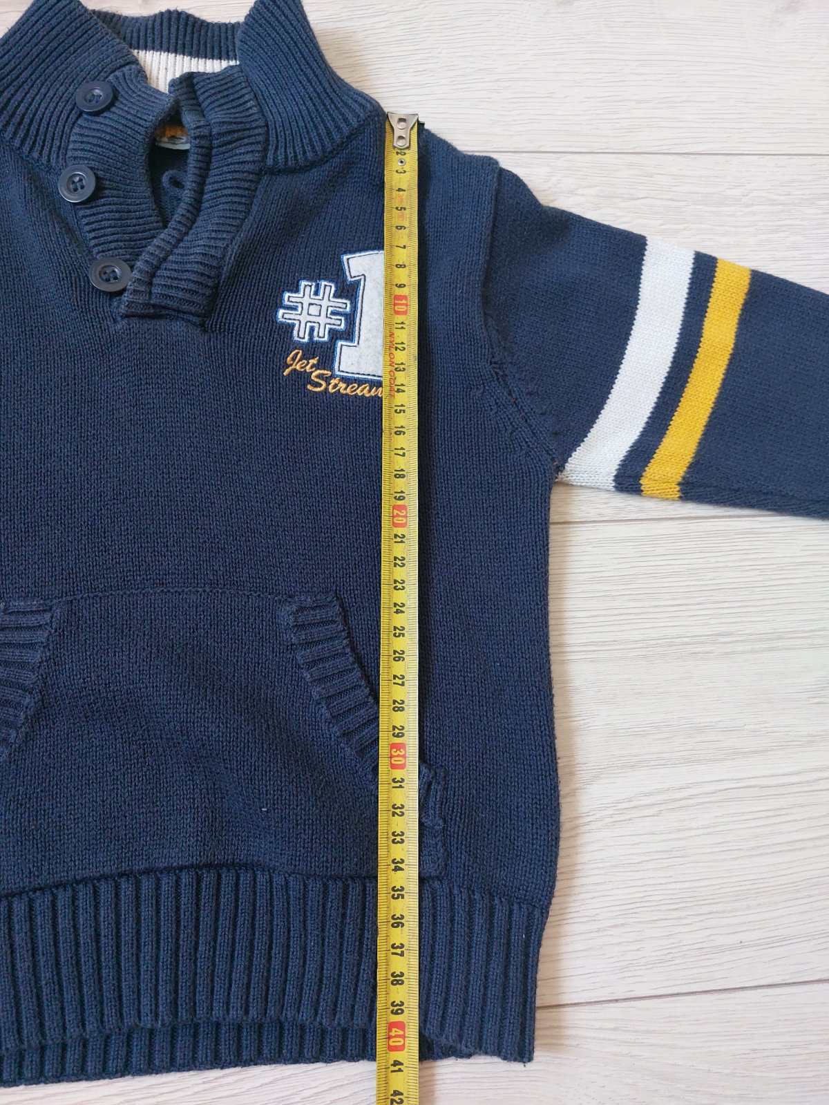 Stredne hruby pekny svetrík, farba jemne vyblednuta