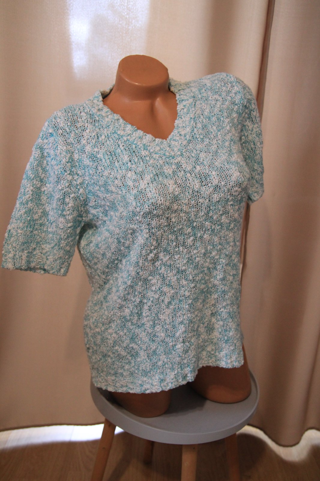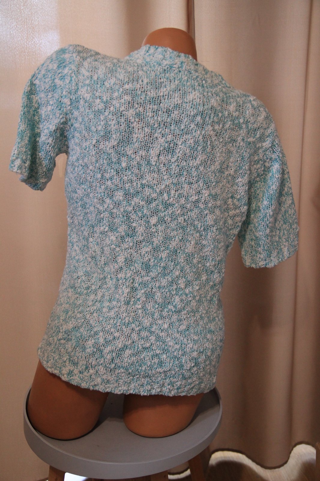 Zeleno biely pletený sveter s krátkymi rukávmi, veľkosť L/XL. Top stav.