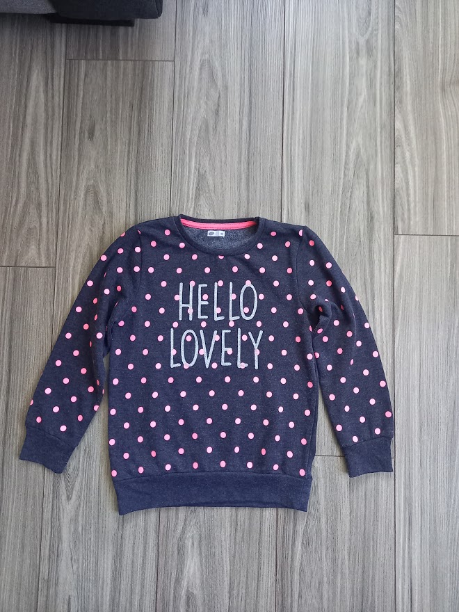 Ako nová v top stave teplejšia bodkovaná mikinka-minimum oblečená.Celková dĺžka 48 cm, top stav. Bez žmolkov či iného poškodenia. Cena 1,50 €+poštovné.