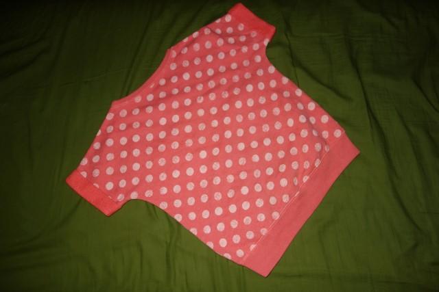 Krasna mikinka s kratkymi rukavmi vo vybornom nosenom stave.