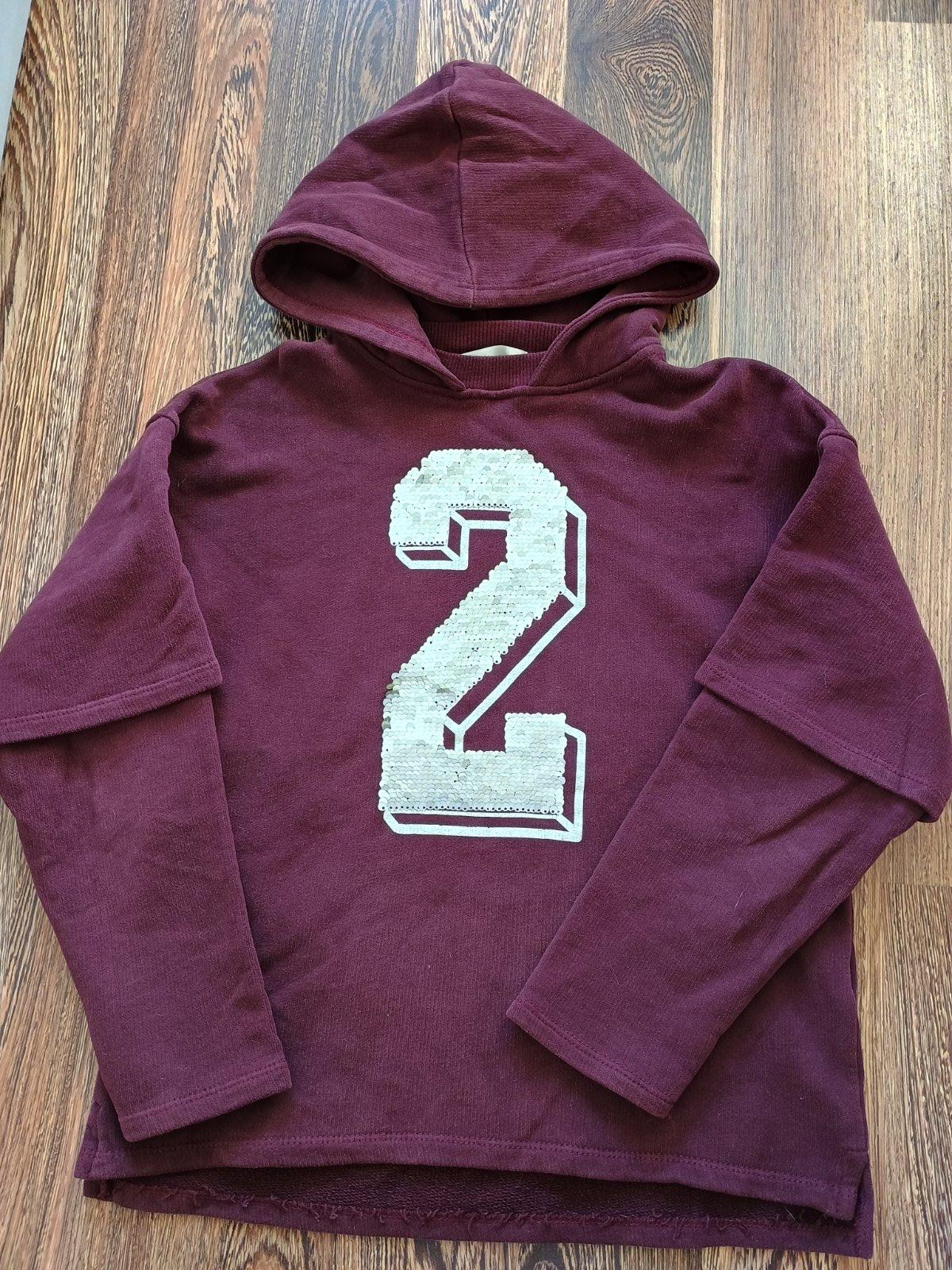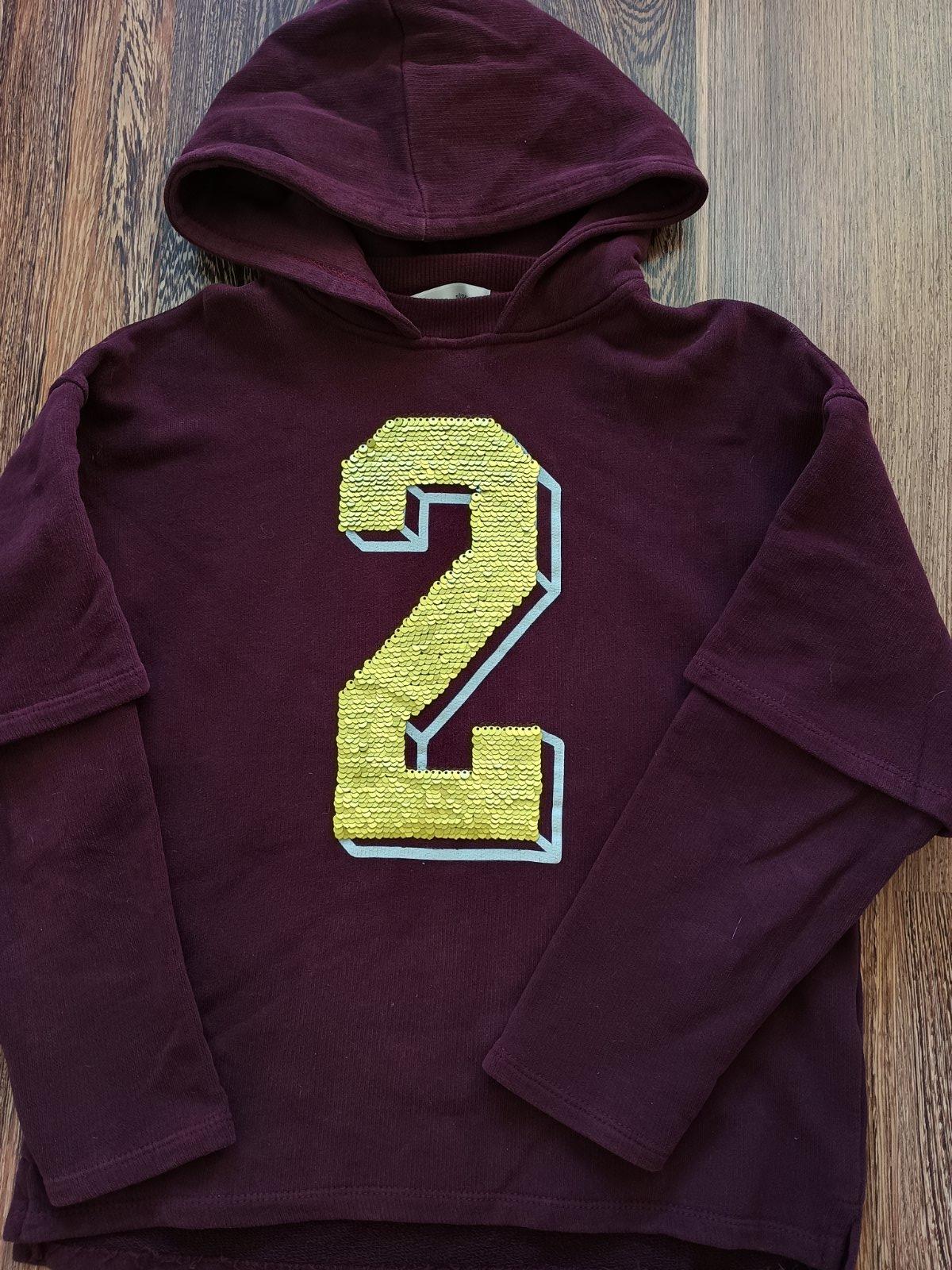 Bordova mikina s flitrovou aplikaciou v zlatej alebo striebornej farbe podla nalady. Dlzka 48, rukav 54. Vyborny stav